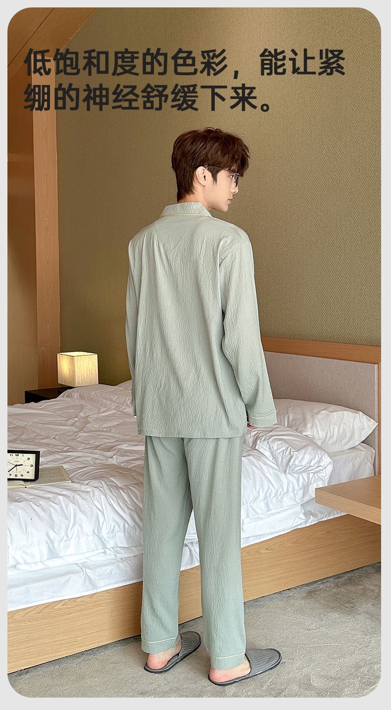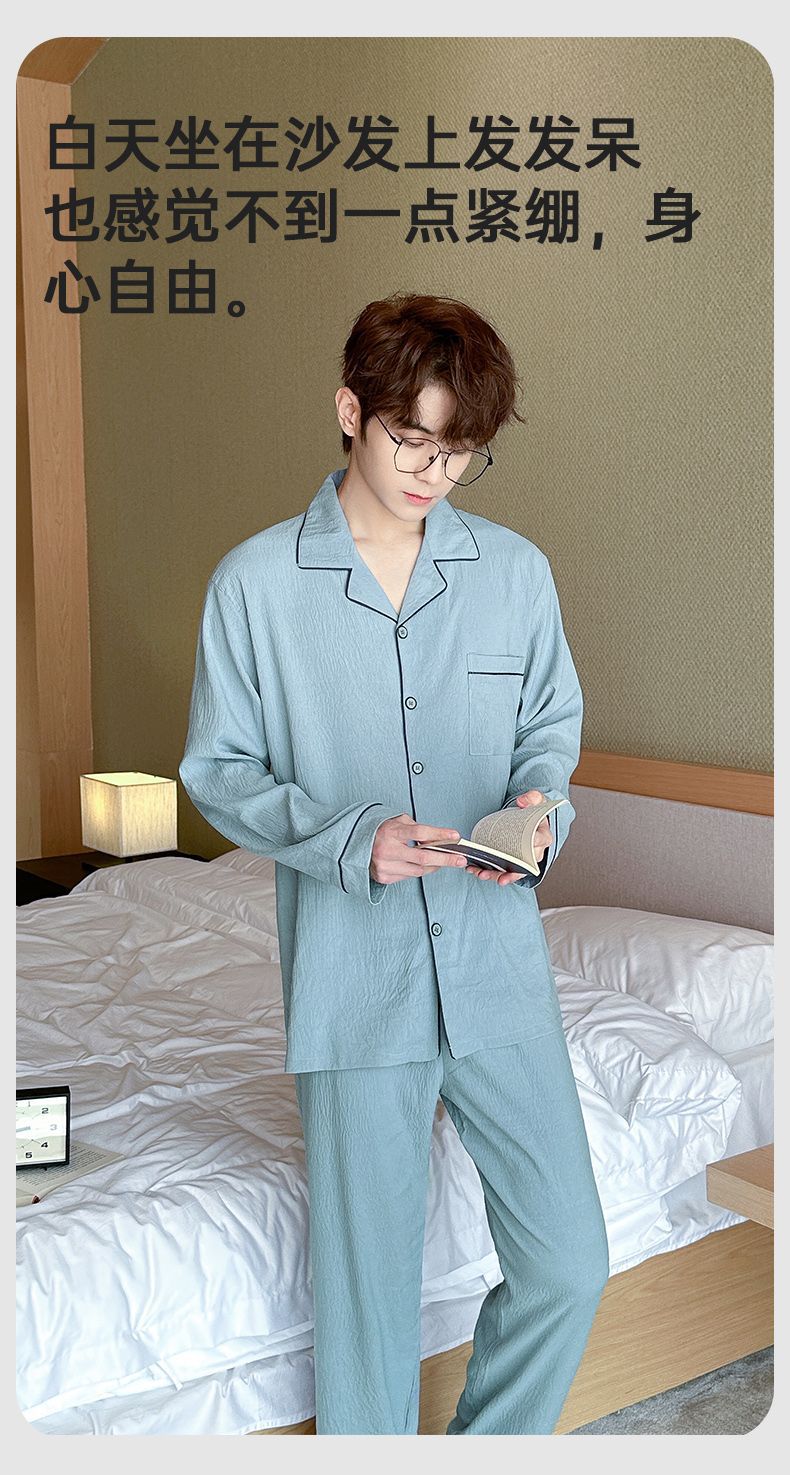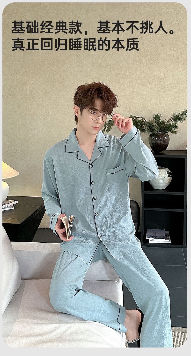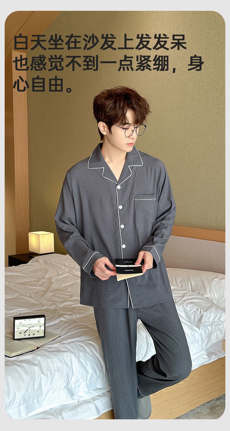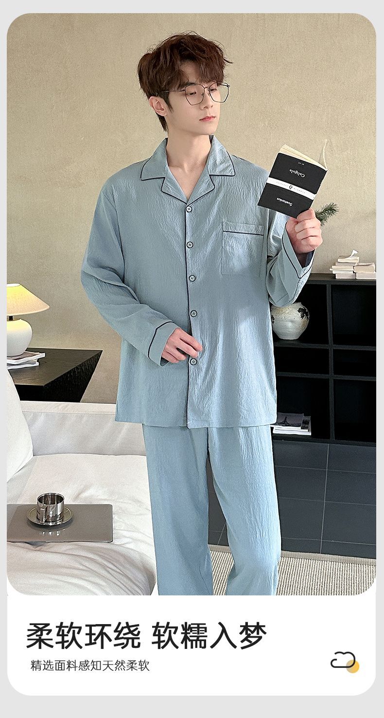 Мужские хлопковые брюки с длинными рукавами, пижамы из двух предметов, весенне-осенний простой однотонный кардиган с лацканами, можно носить вне домашней одежды