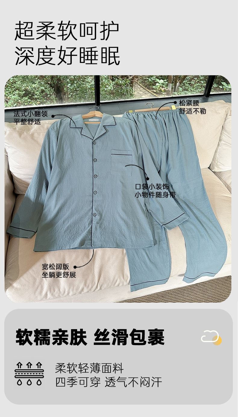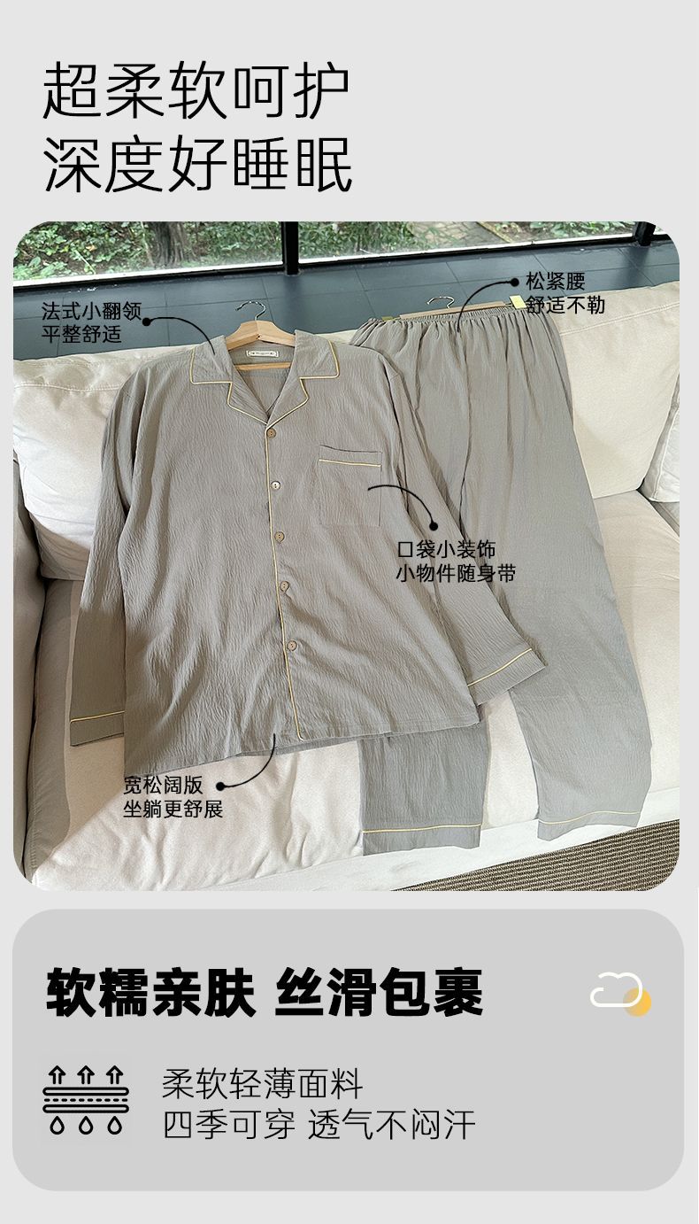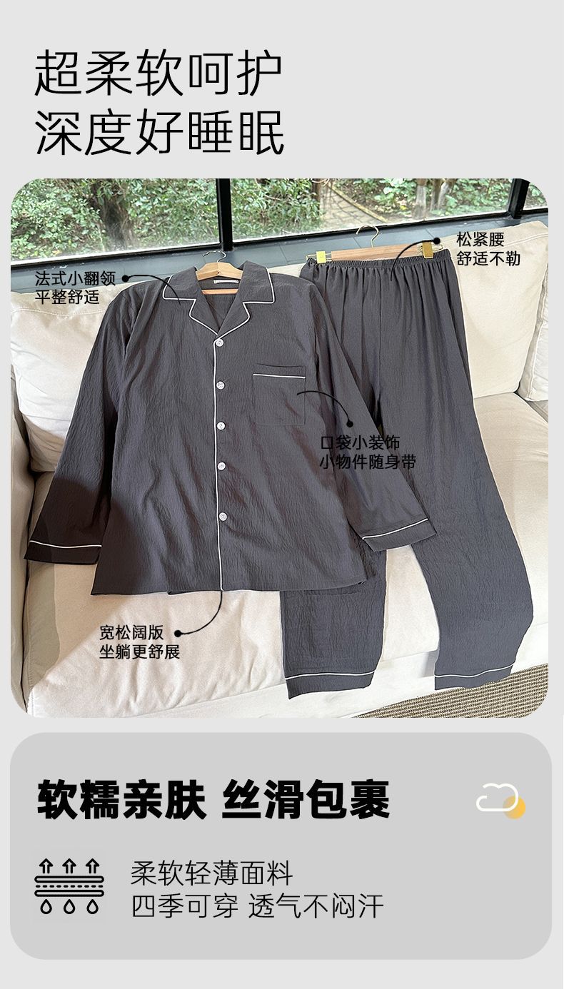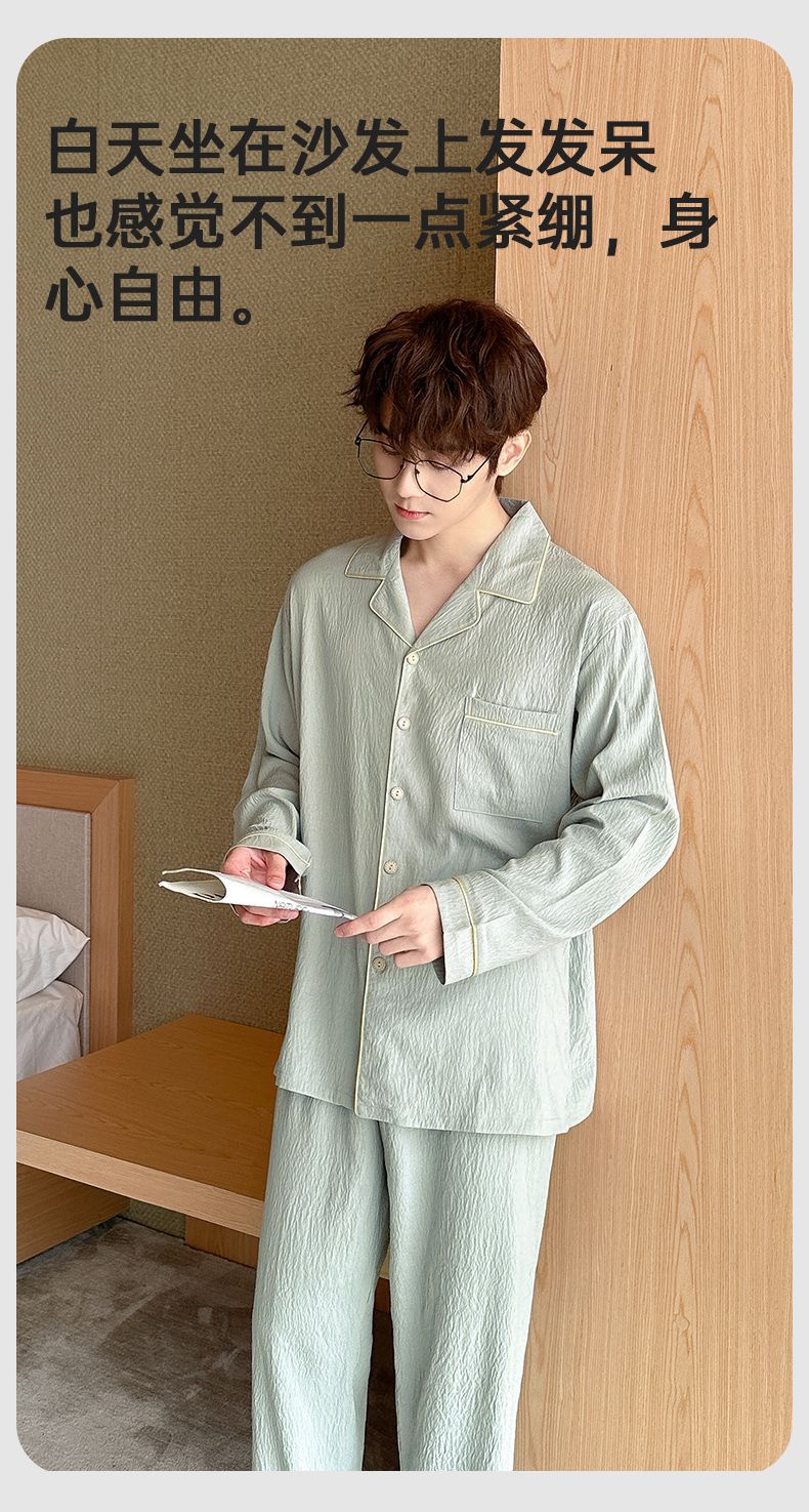 Мужские хлопковые брюки с длинными рукавами, пижамы из двух предметов, весенне-осенний простой однотонный кардиган с лацканами, можно носить вне домашней одежды