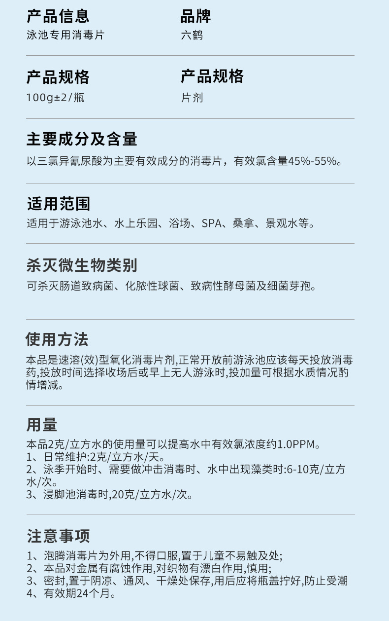 Специальные дезинфекционные таблетки для бассейна Jihiq'an 100г
