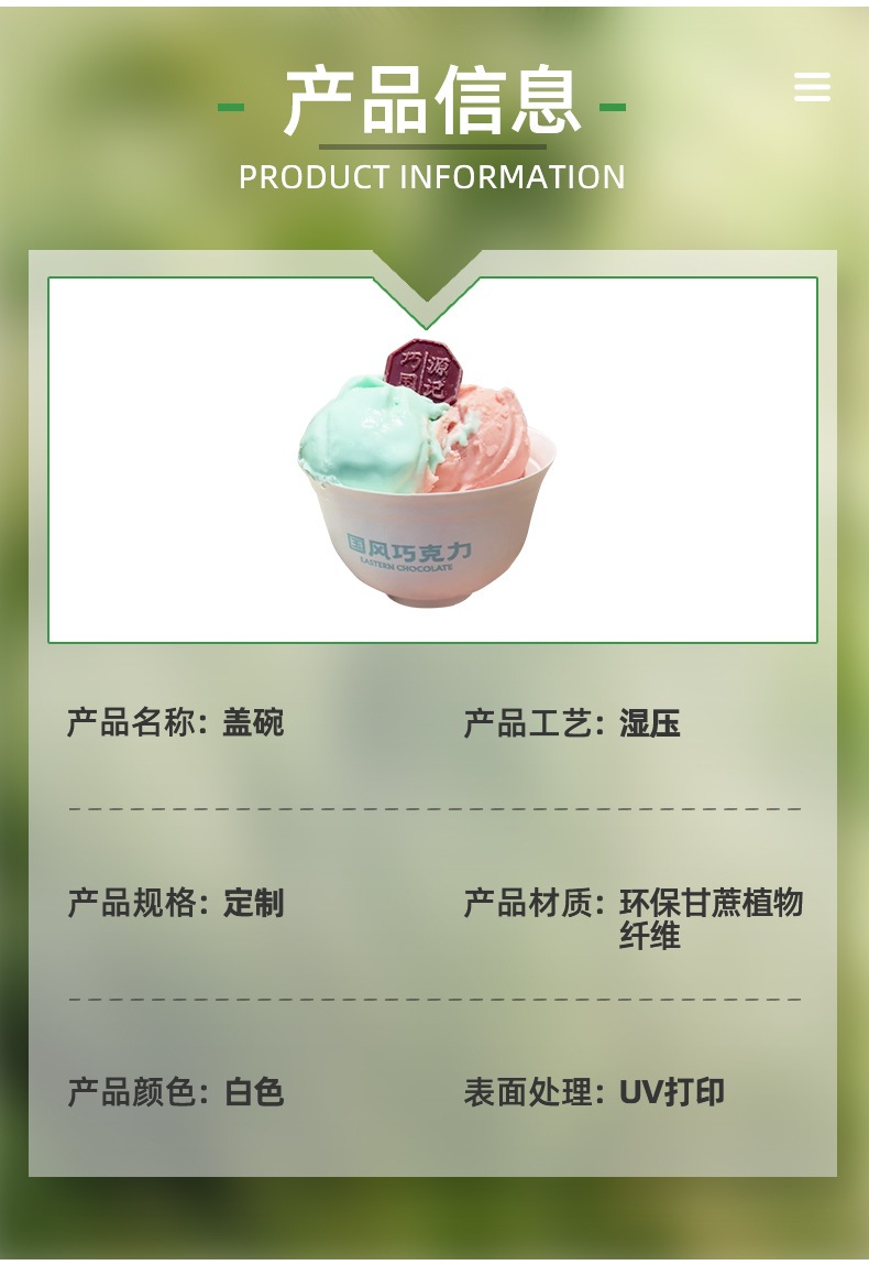 Новая чаша из волокна сахарного тростника белая одноразовая разлагаемая экологически чистая целлюлоза, отлитая летнее мороженое чашка