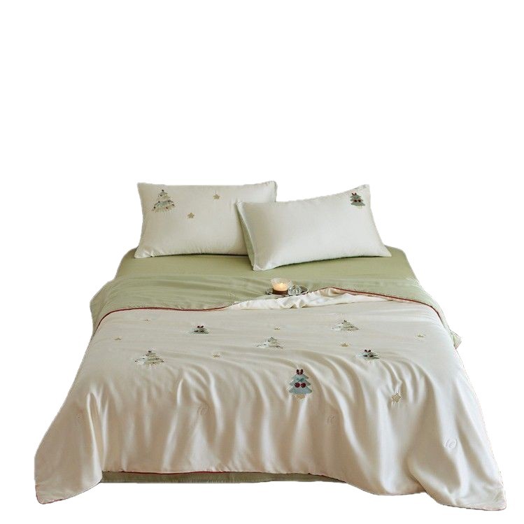 Летнее одеяло из соевого шелка класса А 50-х годов с вышивкой из лиоцелла Tencel, комплект из четырех предметов с шнуровым краем, летнее одеяло с кондиционером для обнаженного сна и гладкости