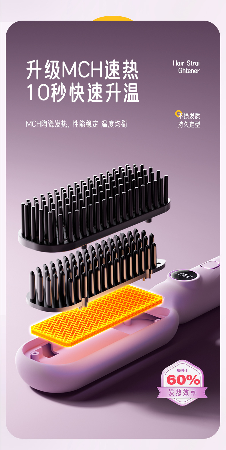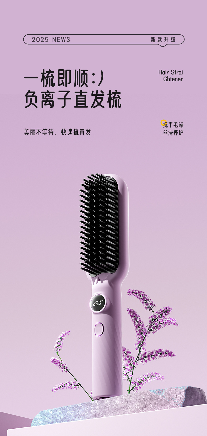 Прямая расческа для волос Жидкокристаллический отрицательный ион не повреждает прямые волосы, вьющиеся волосы двойного назначения ленивые вьющиеся стержни выпрямителя трансграничных производителей