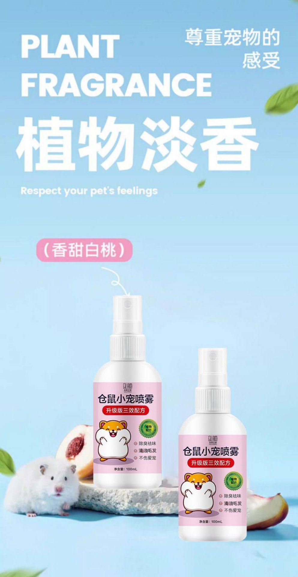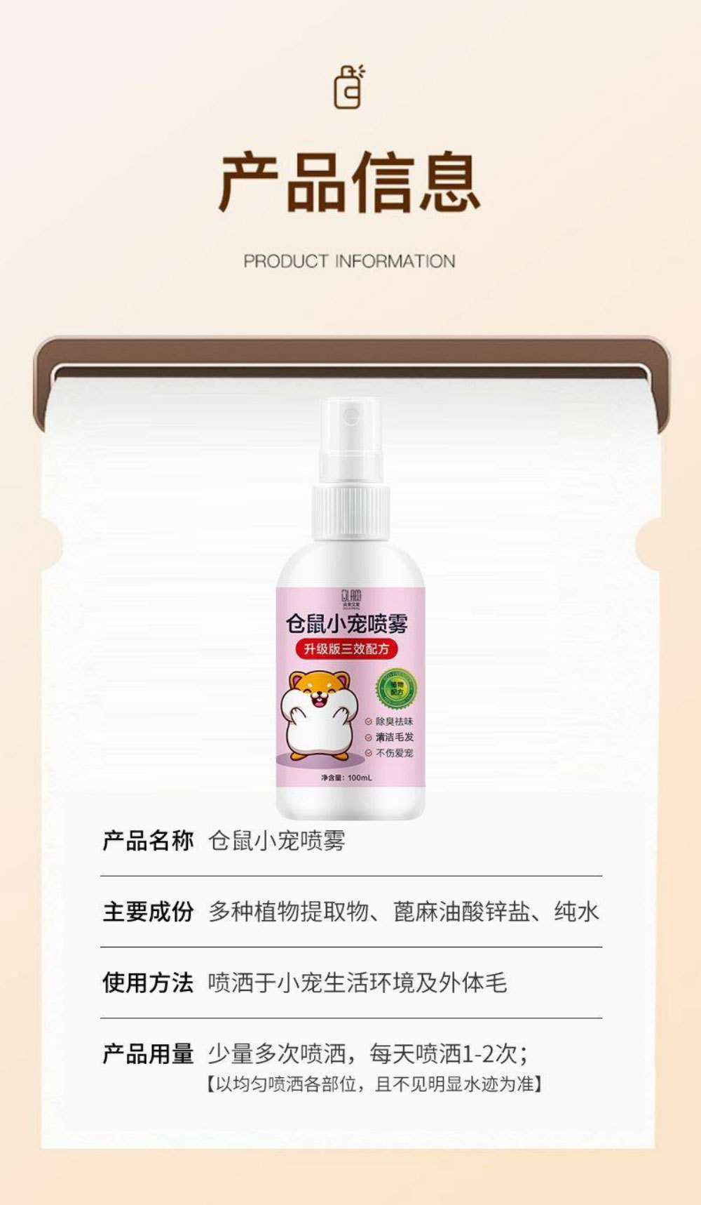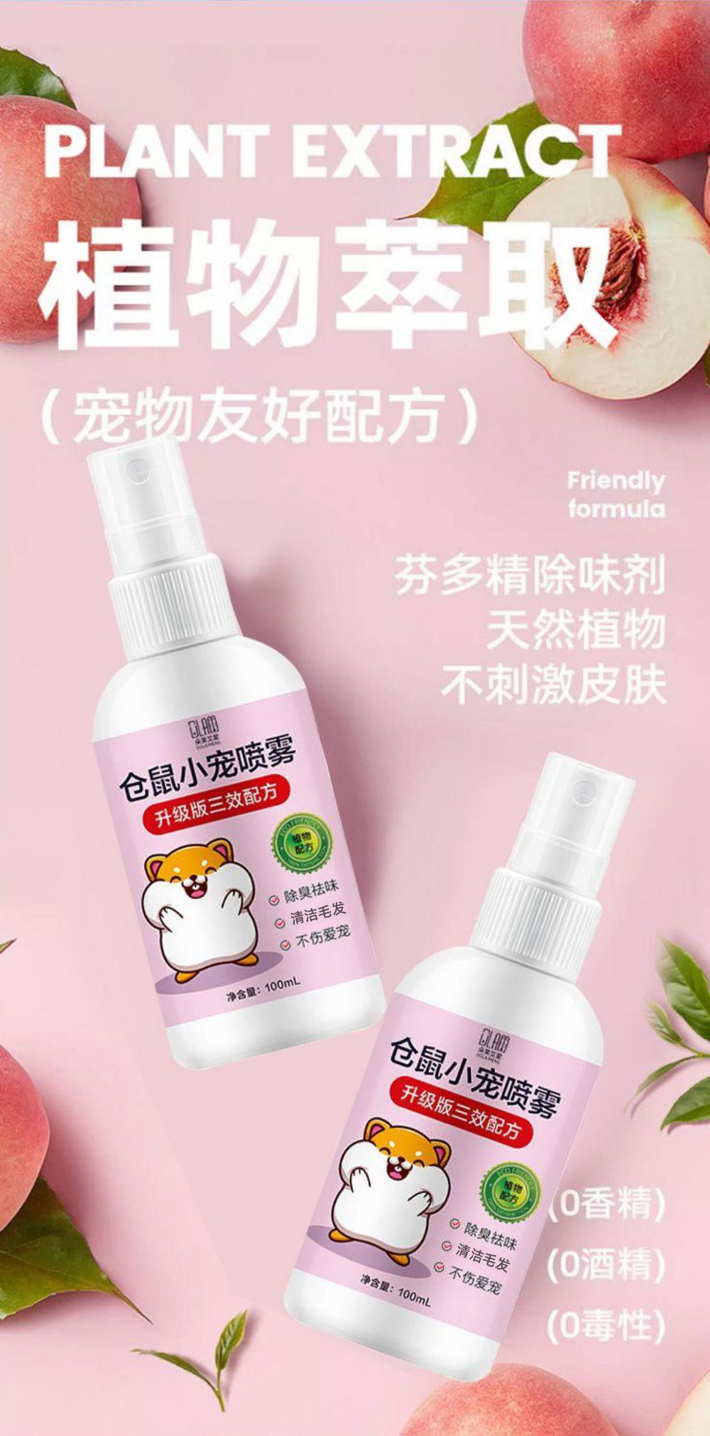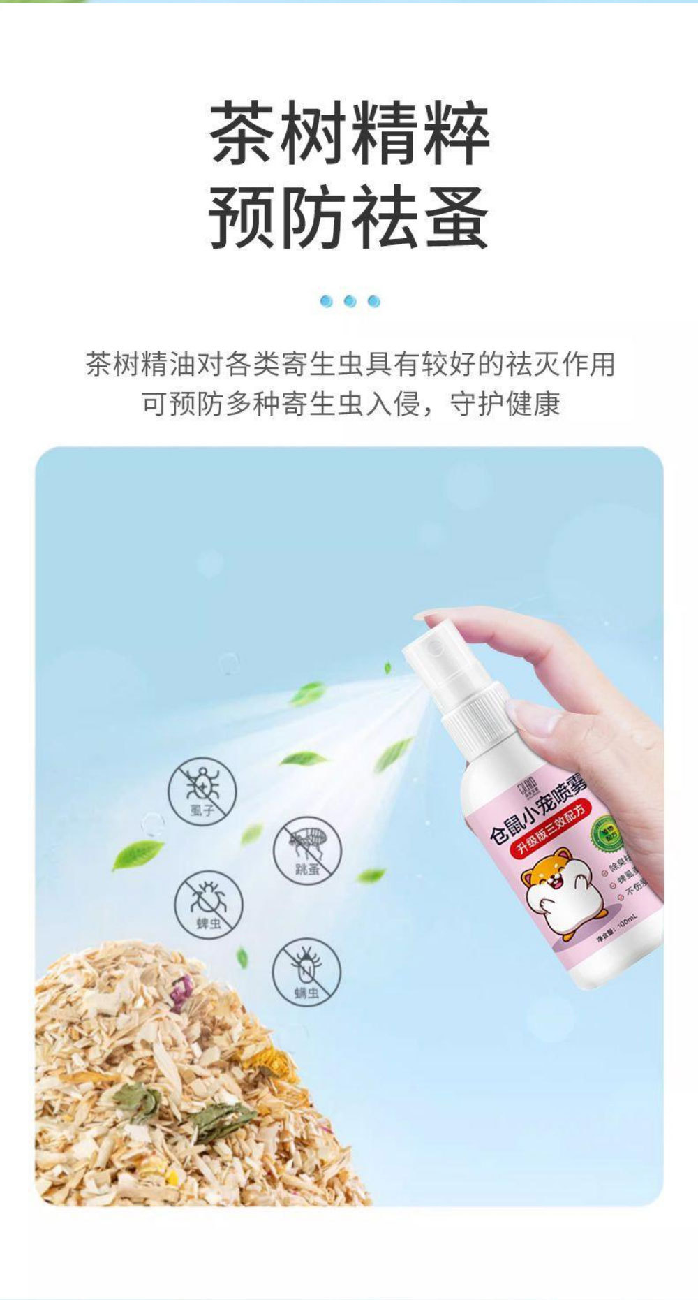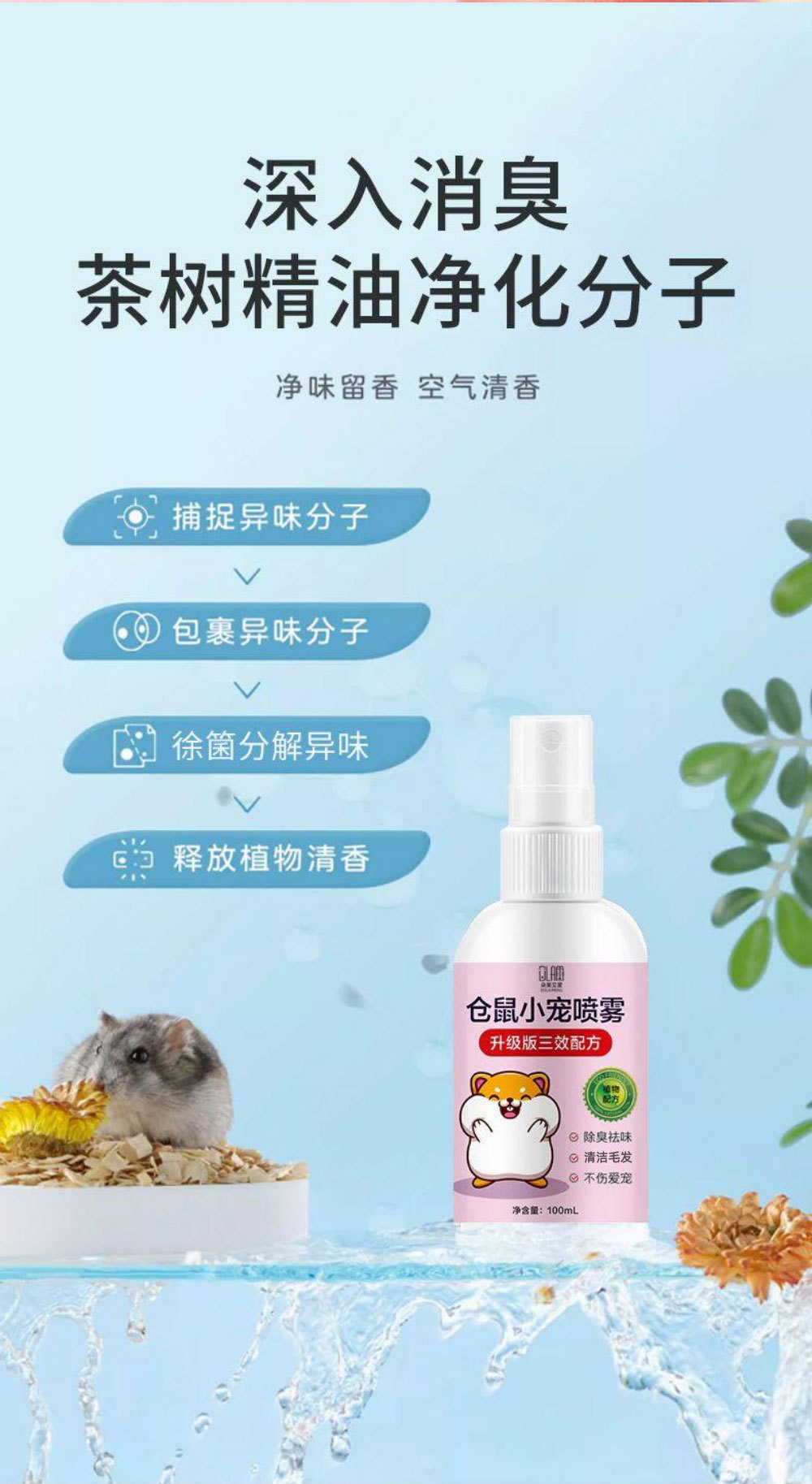 Дезодорирующий спрей для хомяков, дезодорирующий спрей для мелких домашних животных, дезодорирующий спрей для хомяков, удаление клещей, очистка от блох и вшей.