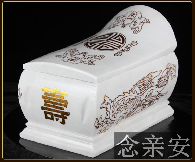 Производитель оптом цельный оптовый белый мраморный гроб-урна для мужчин и женщин, коробка для дня рождения пожилых людей, похоронные принадлежности, белые похоронные принадлежности