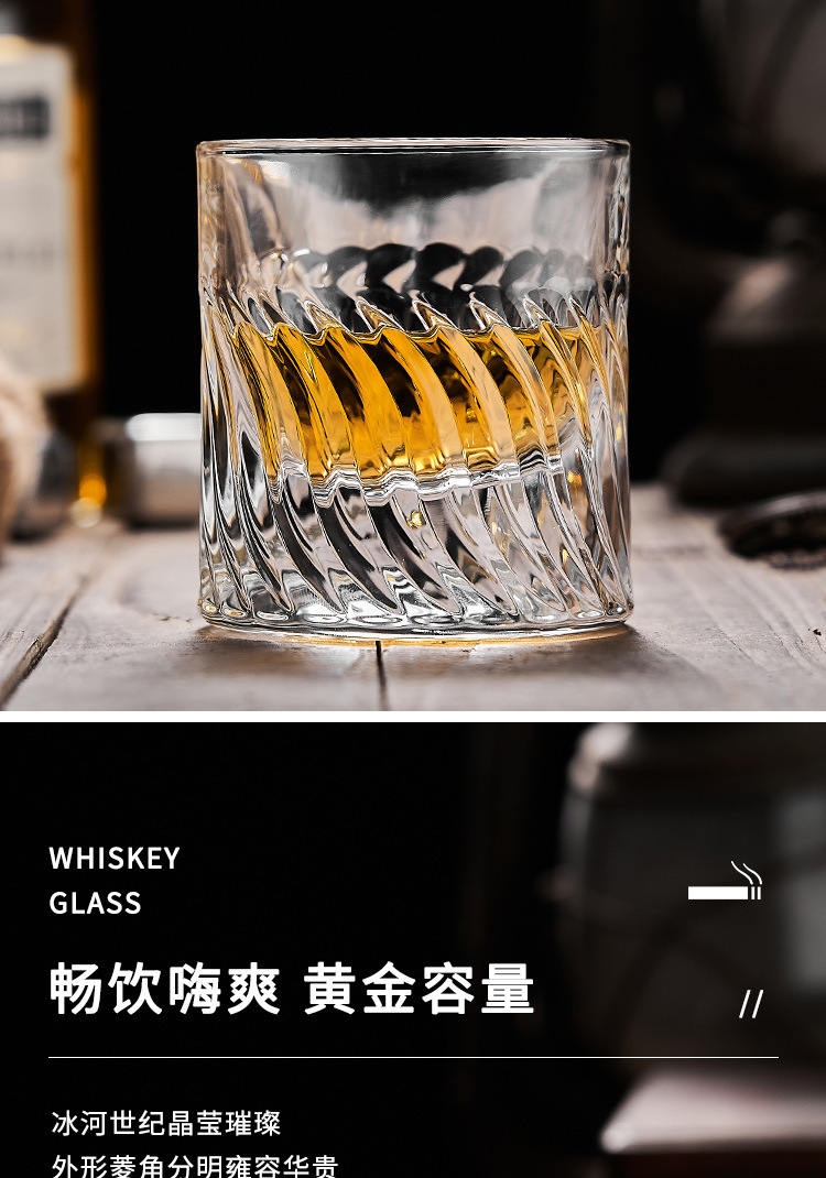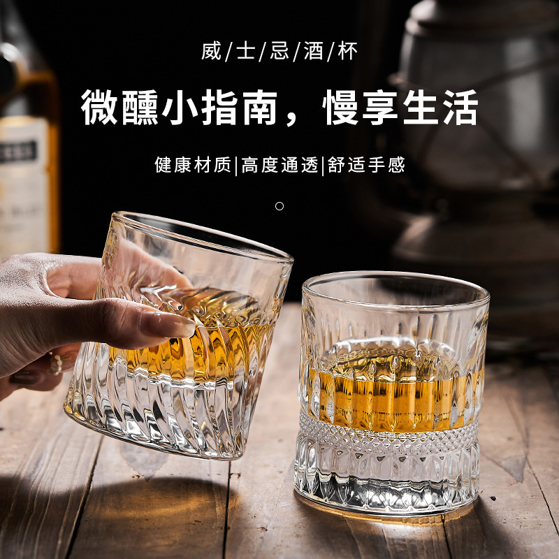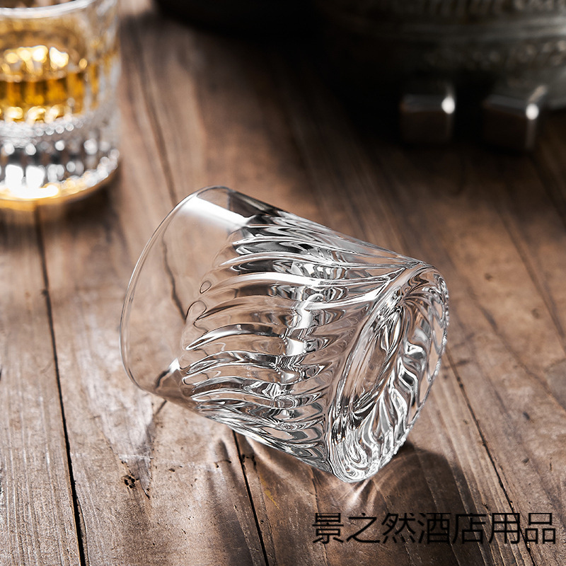 Блестящий бокал для виски с волнистым узором; Блестящий стакан для виски с тиснением