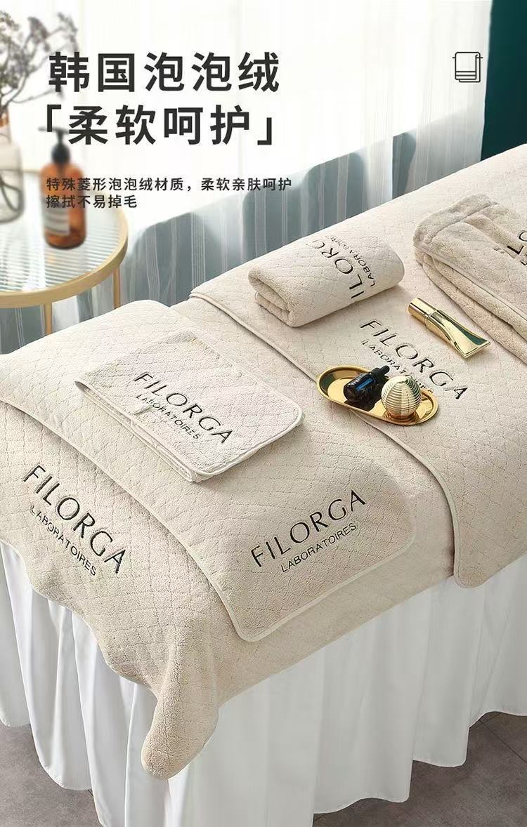 20*70 см, 400 г/м², платок на липучке; Полотенце-подушка 35*75 см, 400 г/м²; Полотенце для груди 40*80 см, 400 г/м²; 70*140см 400г/м² банное полотенце; 80*140см, 400г/м², антибликовая юбка для ванны; Полотенце без головки 80*190 см, 400 г/м²; 100*200 см, 400 г/м², чехол для постельного полотенца без отверстий; Постельное полотенце 80*190 см, 400 г/м² с отверстием; Полотенце для постельного белья 100*200 см, 400 г/м² с отверстием; Набор из пяти предметов «Бесголовая пещера» [тюрбан + наволочка + накидка на грудь + юбка для ванны + покрывало]; Набор из пяти предметов из пузырькового бархата с повязкой на голову [платок + полотенце для подушки + полотенце для груди + юбка для ванны + постельное полотенце]