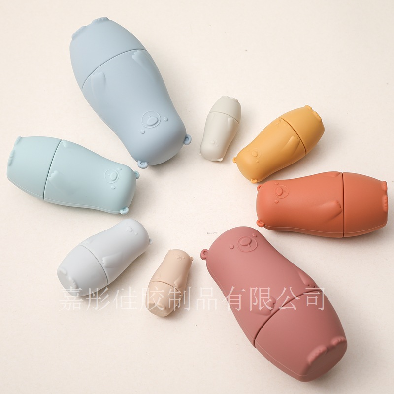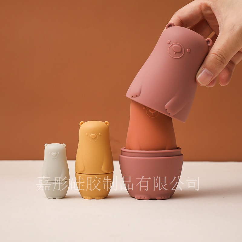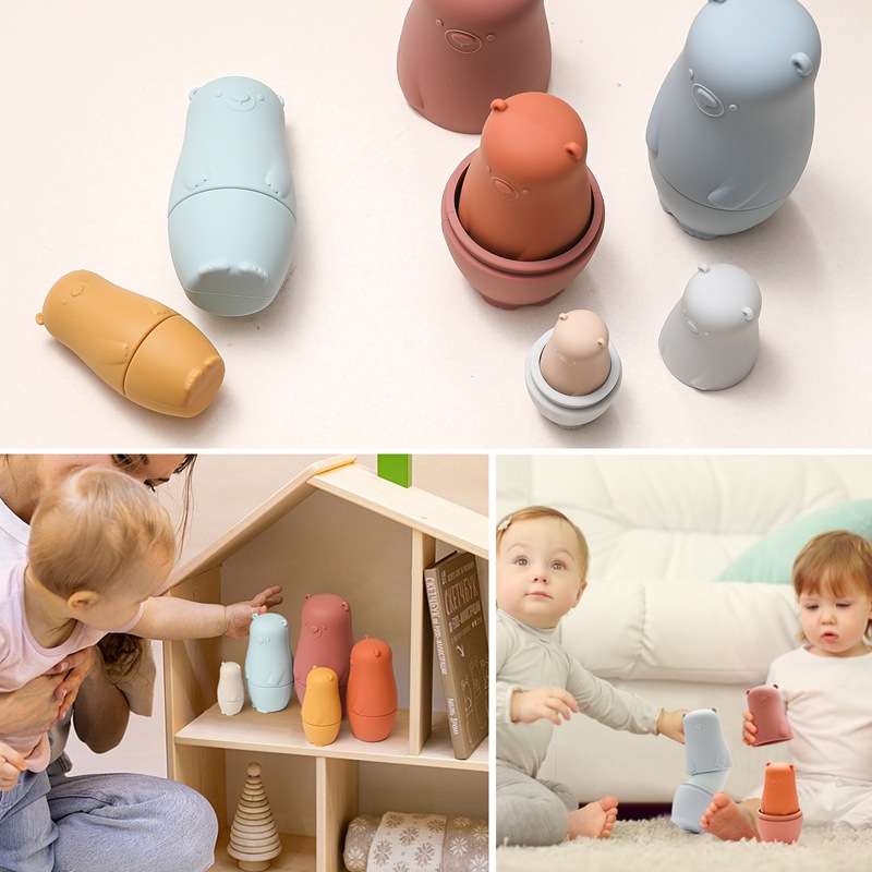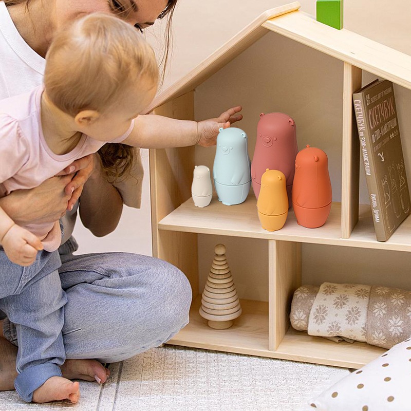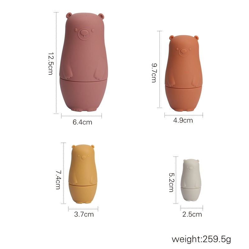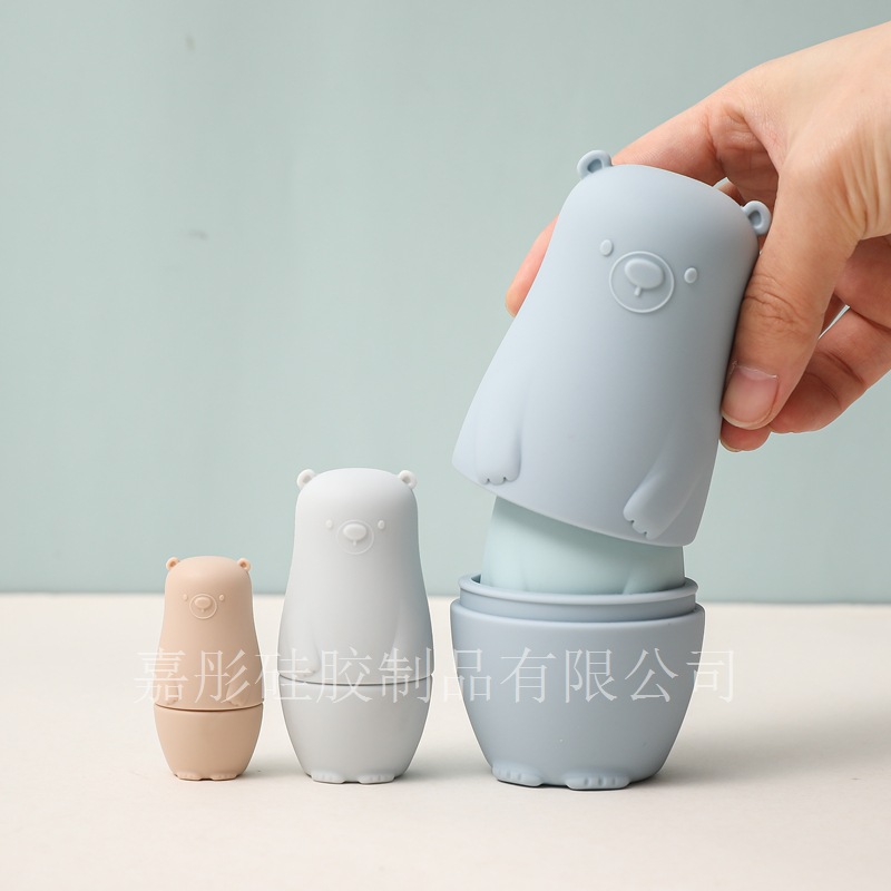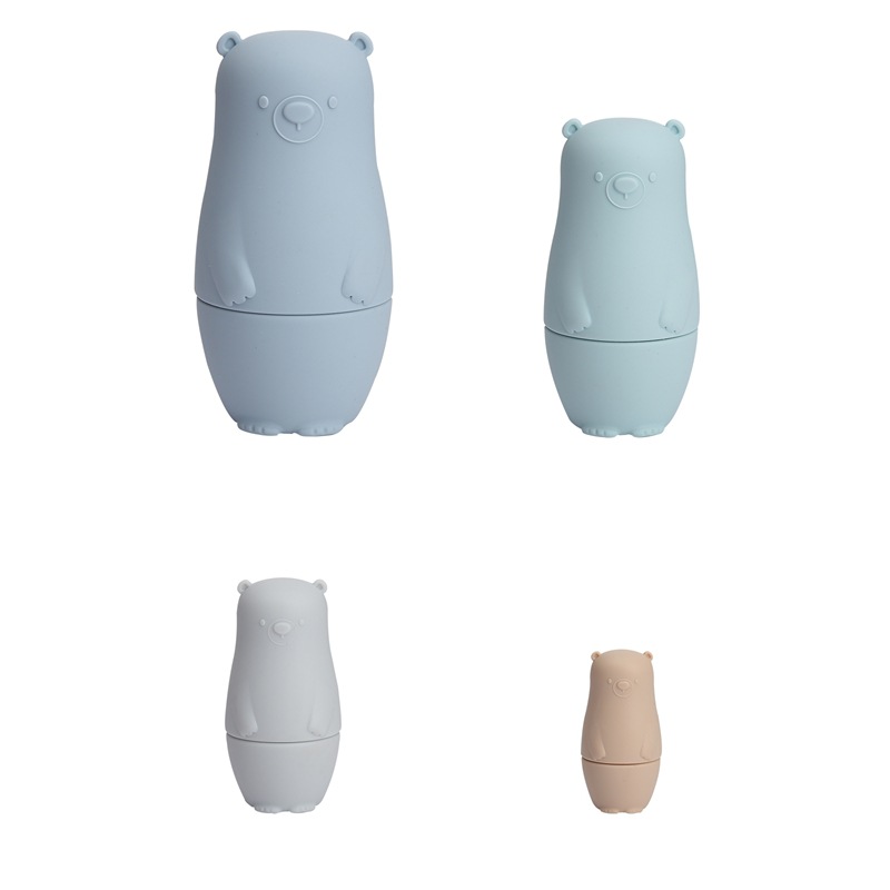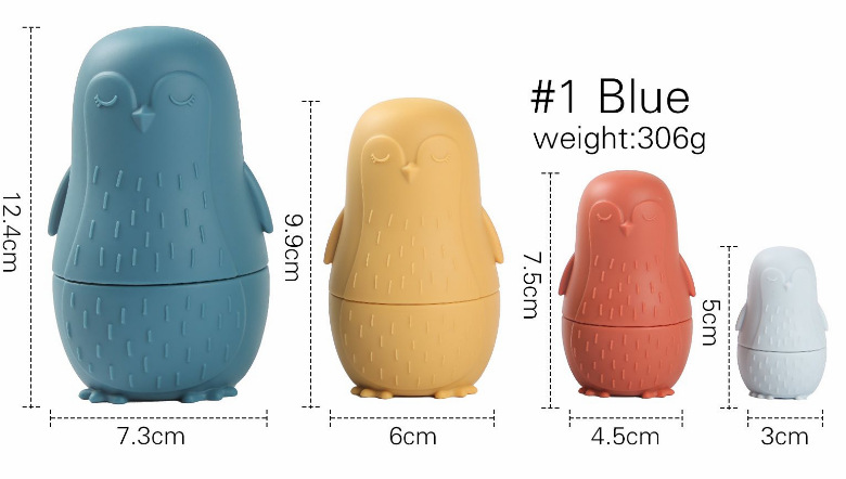 Силиконовая матрешка с медвежонком [4 шт.] Красная; Силиконовая матрешка-мишка [4 шт.] Синий; Силиконовая матрешка-пингвин синяя