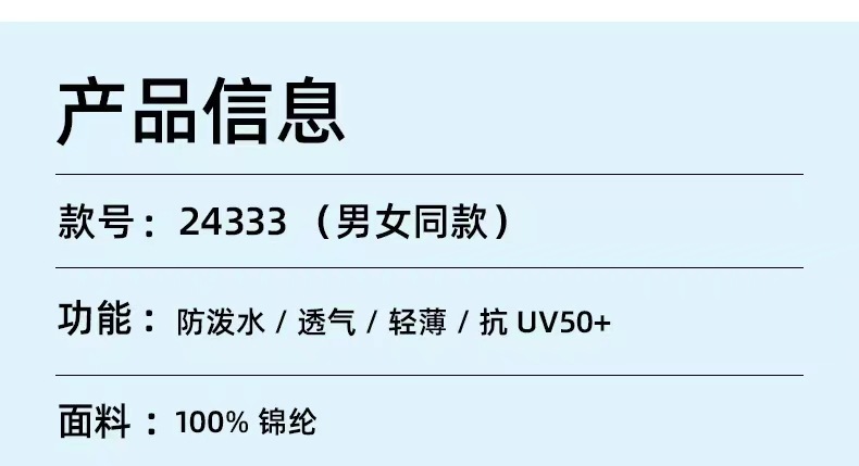Быстрое высыхание; дышащий; защита от ультрафиолета; Супер легкий; Защита от насекомых
