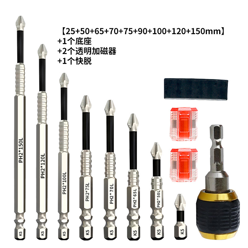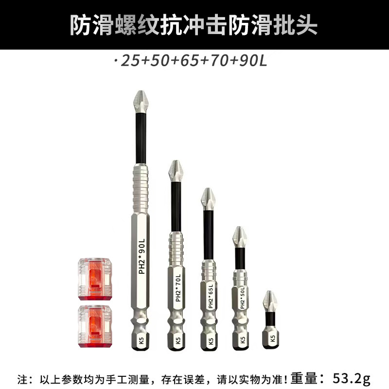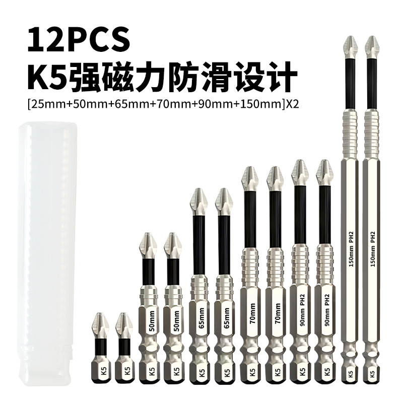 Набор из 12 противоскользящих бит K5 [25-150 мм] X2 [OP пакет]; Набор из 12 противоскользящих бит K5 [25-150 мм] X2+1 красный прозрачный магнетизатор [телескопический кейс] 198 г; Набор противоскользящих бит K5 - 12 штук [25-150 мм] X2 [телескопический кейс] 193 г; Набор противоскользящих бит K5, 6 шт. [25–150 мм] 85,3 г; Набор из 6 противоскользящих бит K5 [50+65+75+100+120+150 мм]; Насадка противоскользящая K5 - набор из 6 штук [25-150мм] + 2 красных прозрачных магнита 63,3г; Набор противоскользящих бит K5 - 5 штук [25+50+65+70+70] 47,6 г; Набор противоскользящих бит K5, 5 шт. [25–90 мм] 53,2 г; Насадка противоскользящая K5 - набор из 5 штук [25-90мм] + 2 красных прозрачных магнита; Противоскользящая насадка K5, комплект из 4 предметов [25-70 мм]; Набор противоскользящих бит K5, 4 шт. [25+50+70+90 мм]; Набор противоскользящих бит K5 из 6 предметов [25-150л] + 1 основание + 1 намагничиватель + 1 телескопическая коробка]; Набор противоскользящих бит K5 из 7 предметов [25-150л] + 1 магнетизатор + 1 основание + 1 телескопическая коробка; Набор противоскользящих бит K5, 9 предметов [25-150L]; Бита противоскользящая K5-25мм [20 шт.] в упаковке 99г; Бита противоскользящая K5-50мм [10 шт.] в упаковке 98,4г; Бита противоскользящая K5-65мм [10 шт.] в упаковке 126г; Бита противоскользящая K5-70мм [10шт] в упаковке 140г; Бита противоскользящая K5-90мм [10 шт.] в упаковке 191,3г; Насадка противоскользящая K5-100мм [10 шт.] в коробке; Насадка противоскользящая K5-120мм [10 шт.] в коробке; Бита противоскользящая K5-150мм [10 шт.] в коробке; K5/противоскользящая нить-25XPH2 [оптом] 3,7г; K5/противоскользящая нить-50XPH2 [оптом] 9,5г; K5/противоскользящая нить-65XPH2 [оптом] 11г; K5/противоскользящая нить-70XPH2 [оптом] 12г; K5/противоскользящая резьба-75XPH2 [оптом]; K5/противоскользящая нить-90XPH2 [оптом] 17г; K5/противоскользящая нить-100XPH2 [оптом] 20,2 г; K5/противоскользящая резьба-120XPH2 [оптом]; K5/противоскользящая нить-150XPH2 [оптом] 32г; Красный прозрачный магнетизатор [оптом]; Желтый прозрачный магнетизатор [оптом]; Синий прозрачный магнетизатор [оптом]; Фиолетовый прозрачный магнетизатор [оптом]; Зеленый прозрачный магнетизатор [оптом]; Черная основа с 6 отверстиями; Черная основа с 7 отверстиями; Набор из 6 бит + основание + 2 прозрачных магнитизатора + 1 быстросъемный механизм; Набор из 9 бит + база + 2 прозрачных магнитизатора + 1 быстросъемный механизм; Набор из 18 бит + база + 2 прозрачных магнитизатора + 1 быстросъемный механизм