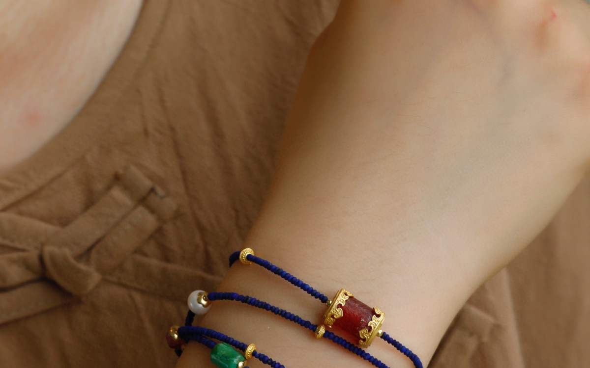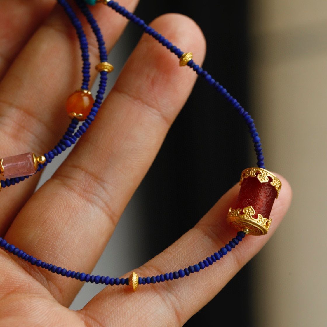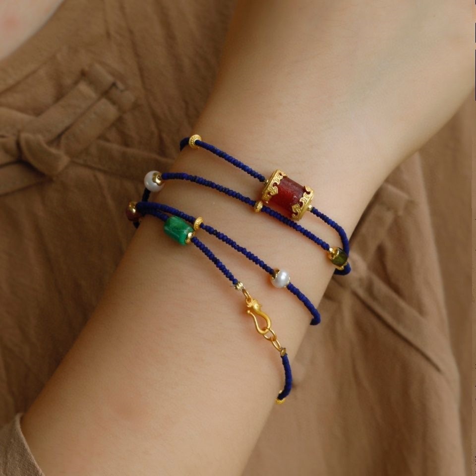 Натуральный лазурит, маленькие бусины, многоцветочный браслет с несколькими сокровищами, ожерелье двойного назначения, подходящие аксессуары из жемчуга и турмалина