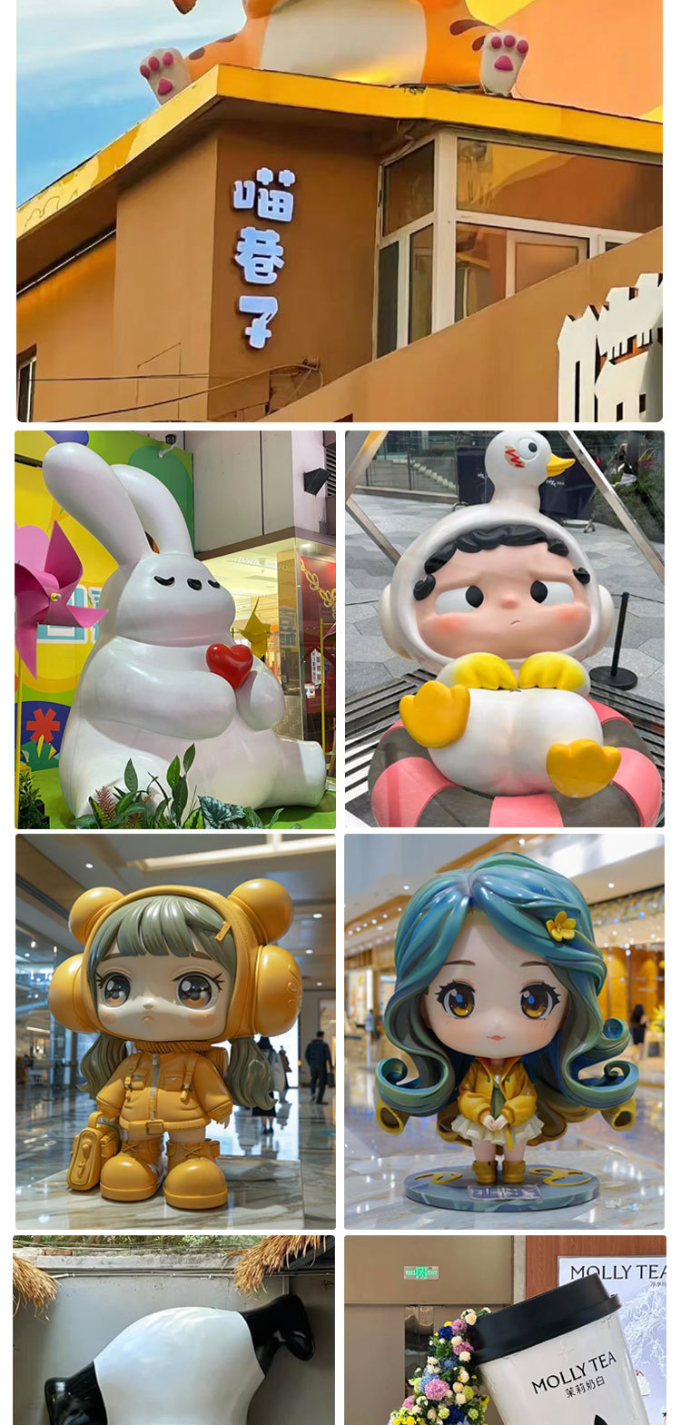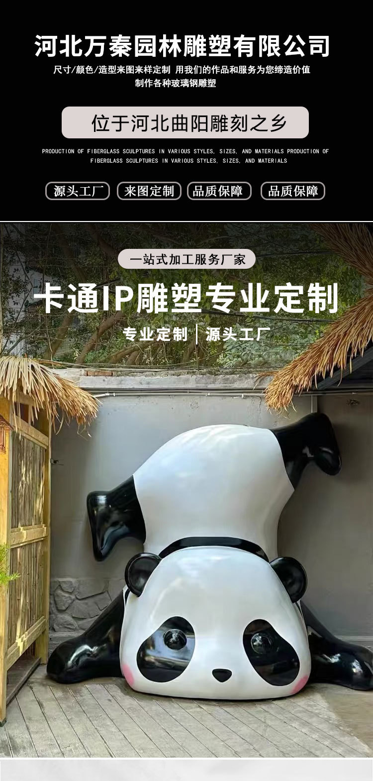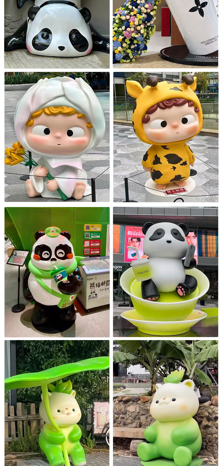 Индивидуальная скульптура из стекловолокна в виде мультяшного персонажа IP, креативное сиденье для торгового центра, скульптура гигантской панды из стекловолокна.
