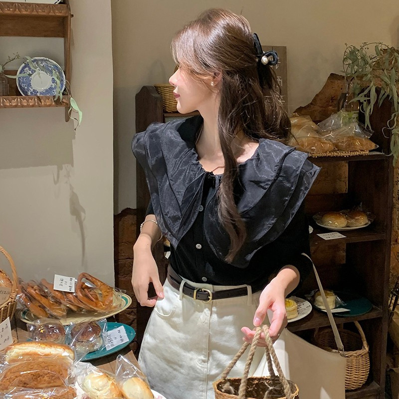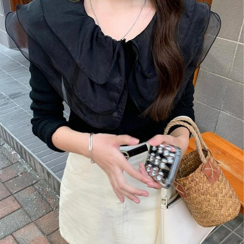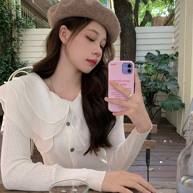 Шикарный милый и нежный вязаный кардиган, женский тонкий свитер с кукольным воротником, тонкий топ с длинными рукавами и рюшами на воротнике