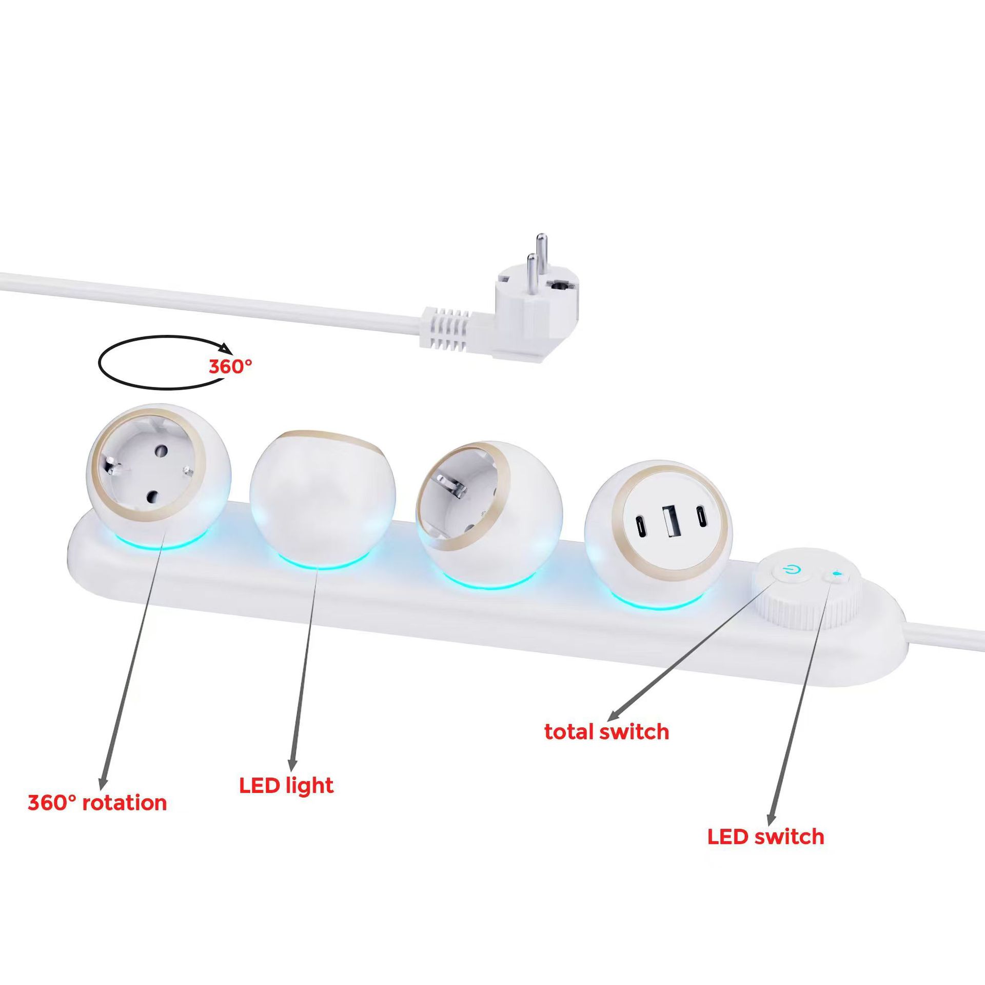 Amazon европейская розетка 360 ° вращающаяся светильная панель с атмосферой один поворот мульти-переключатель USB-штекер оптовая продажа