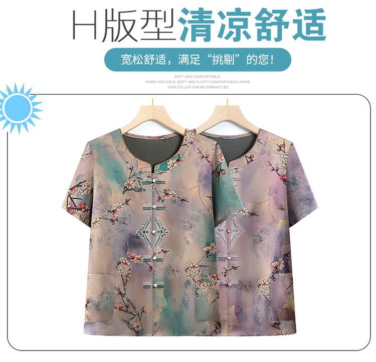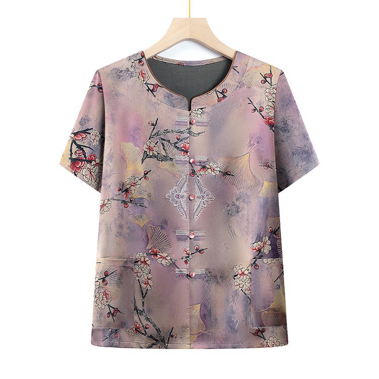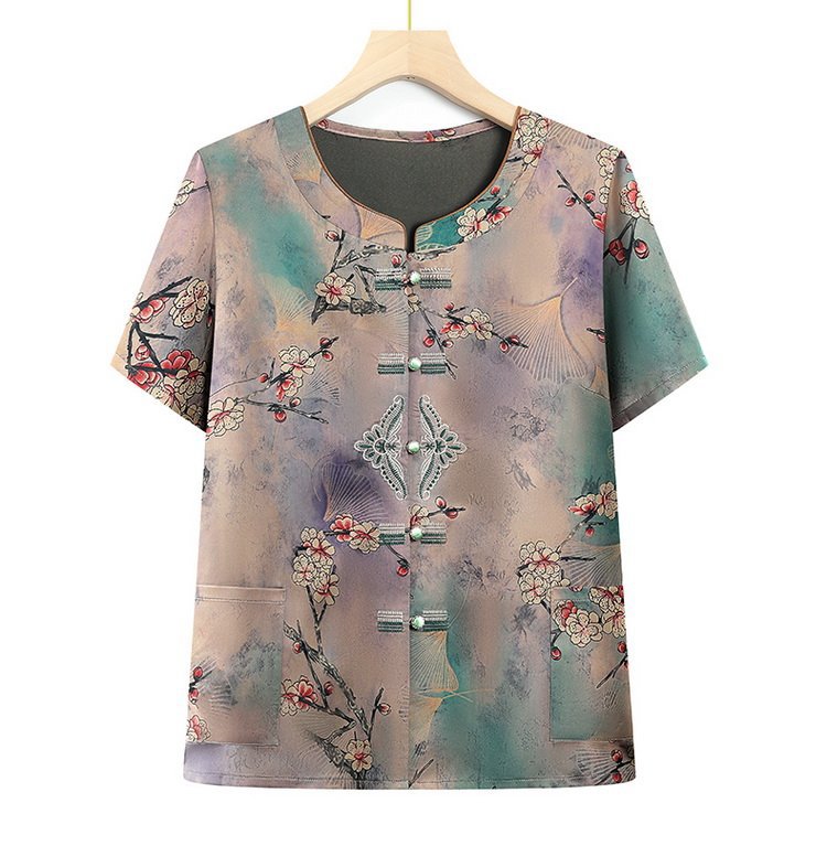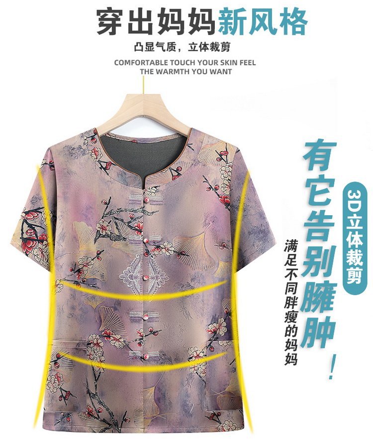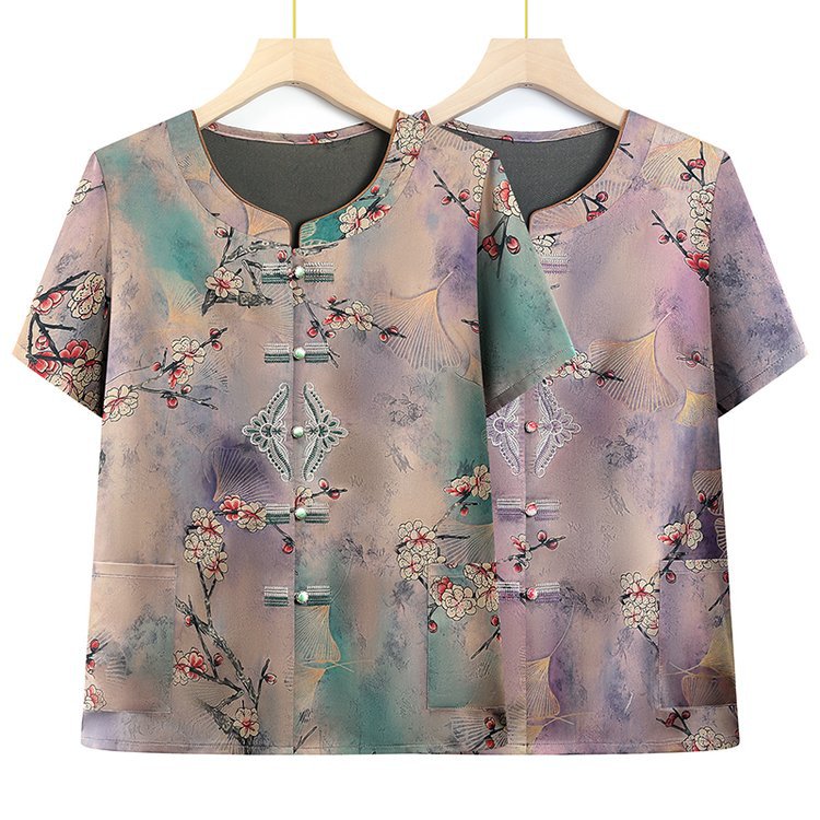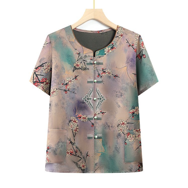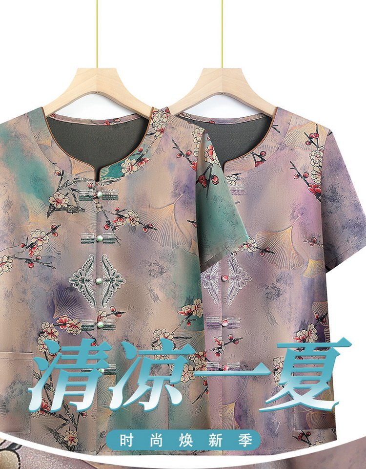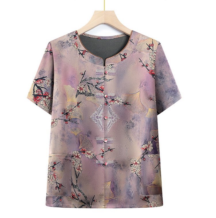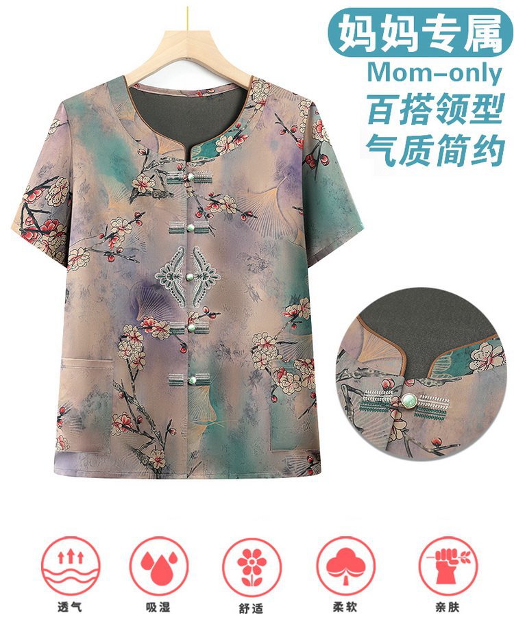 Летние топы с короткими рукавами для мам среднего и пожилого возраста, тонкие рубашки бабушки, летняя одежда для пожилых людей, свободные рубашки.