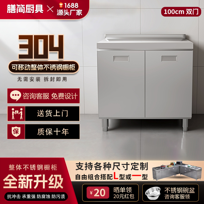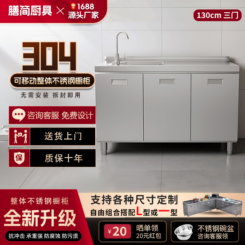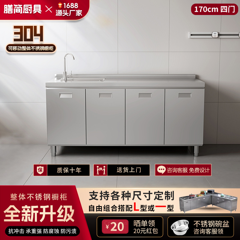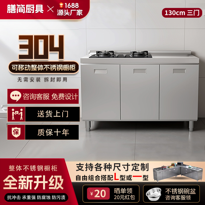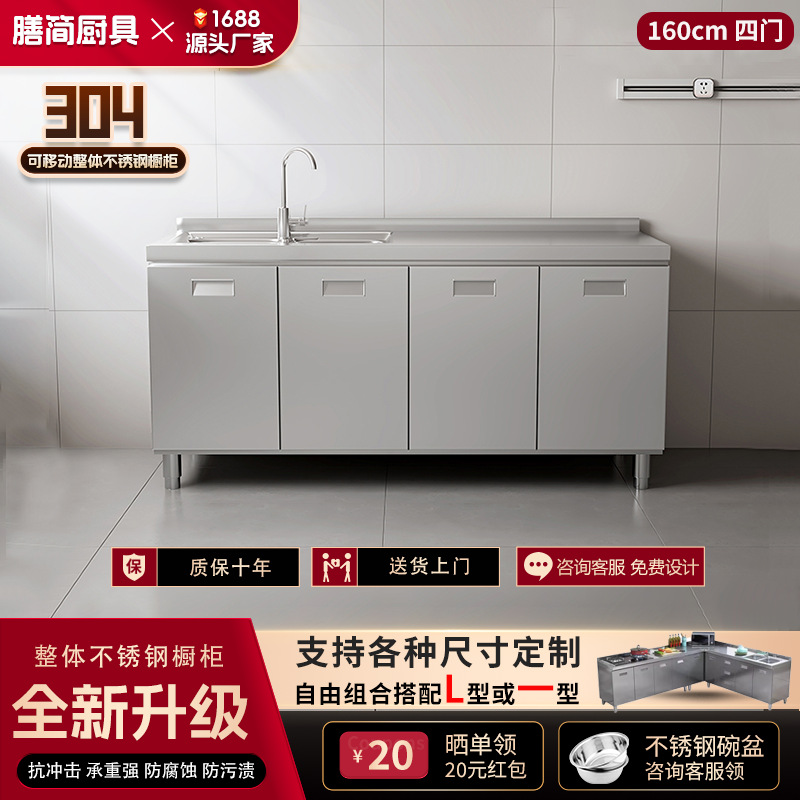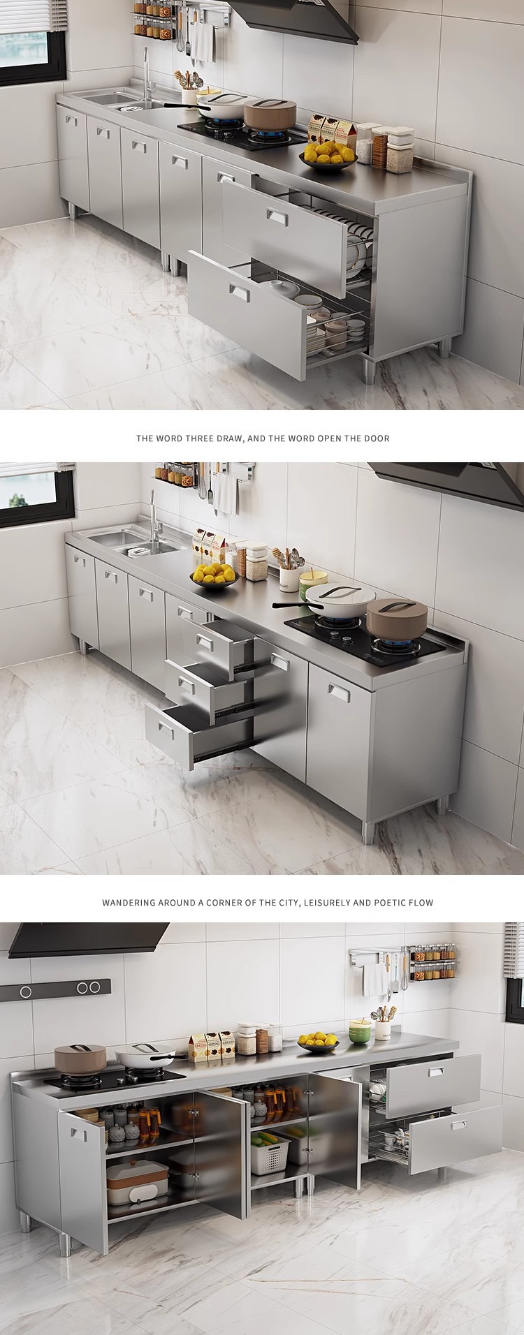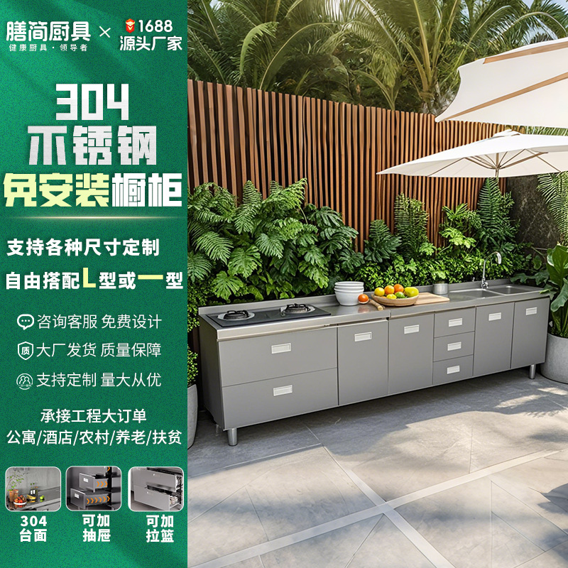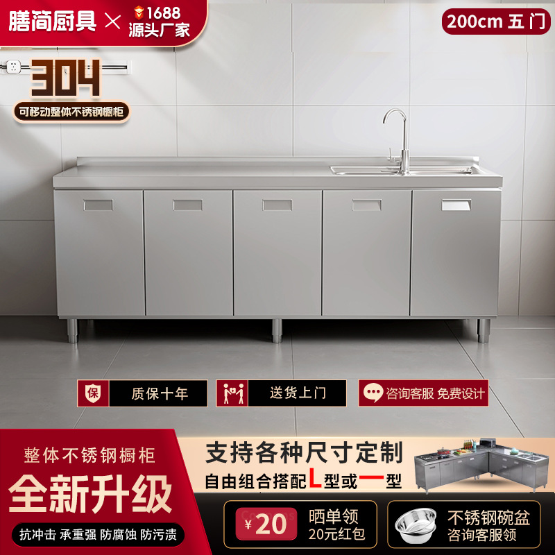 Кухонные шкафы из нержавеющей стали 304 для дома, встроенные в столешницу, готовые к установке, для аренды, от производителя.