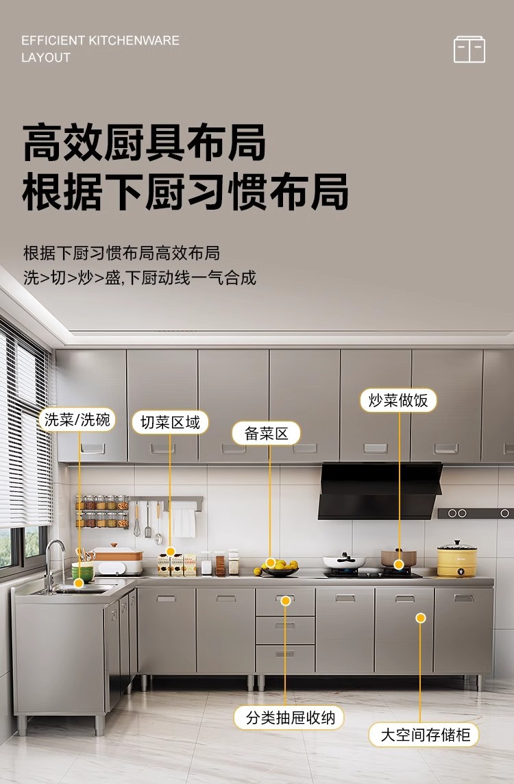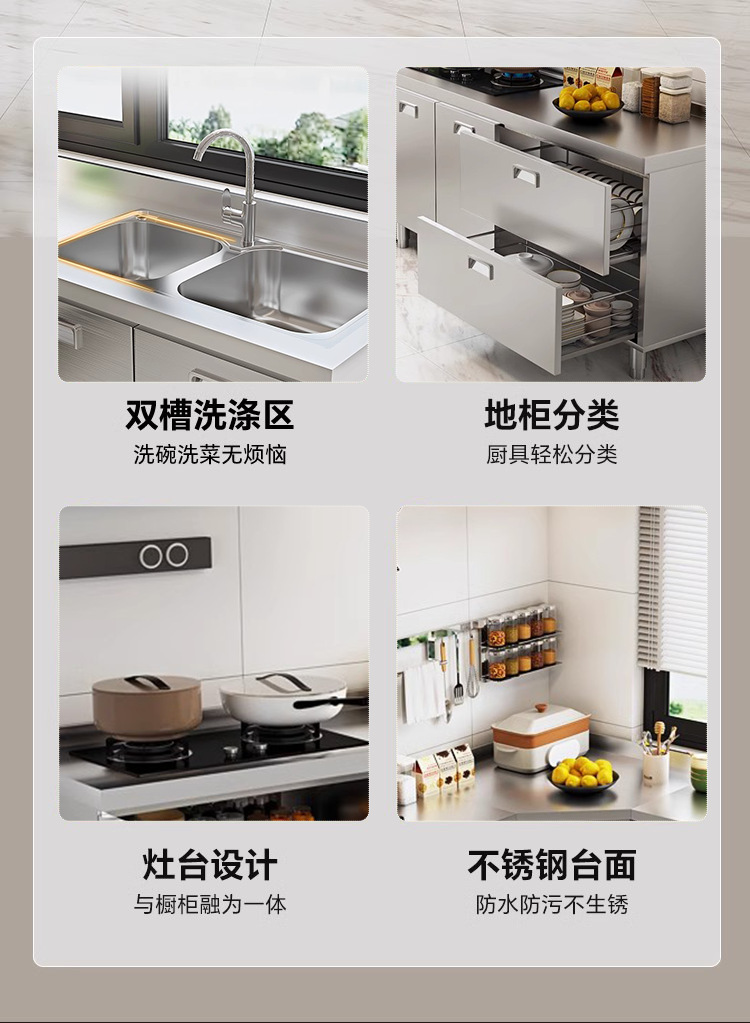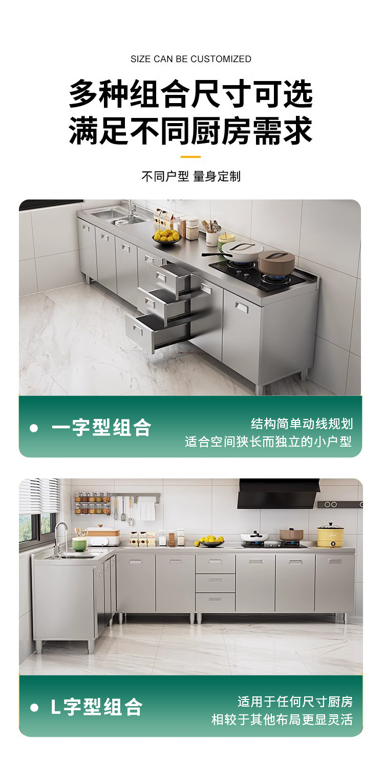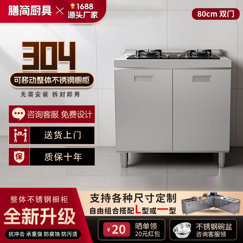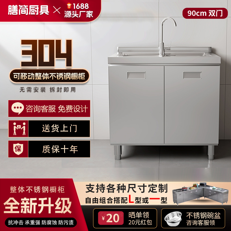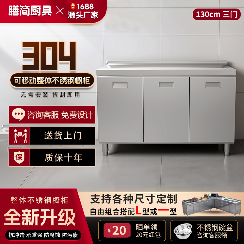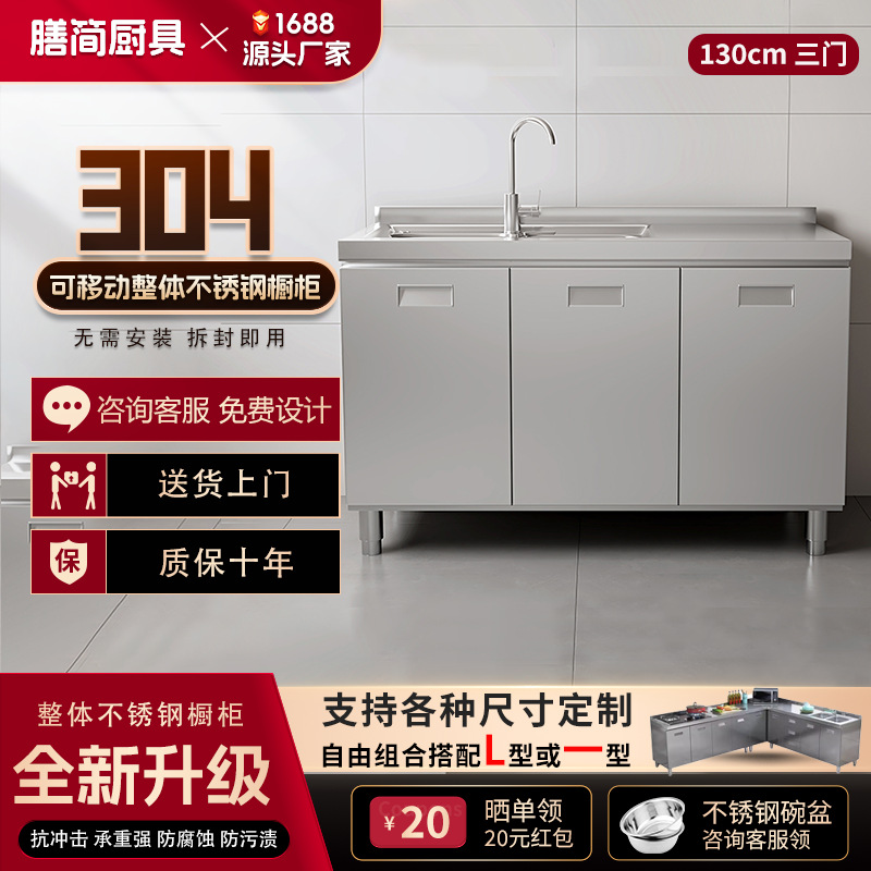 Кухонные шкафы из нержавеющей стали 304 для дома, встроенные в столешницу, готовые к установке, для аренды, от производителя.
