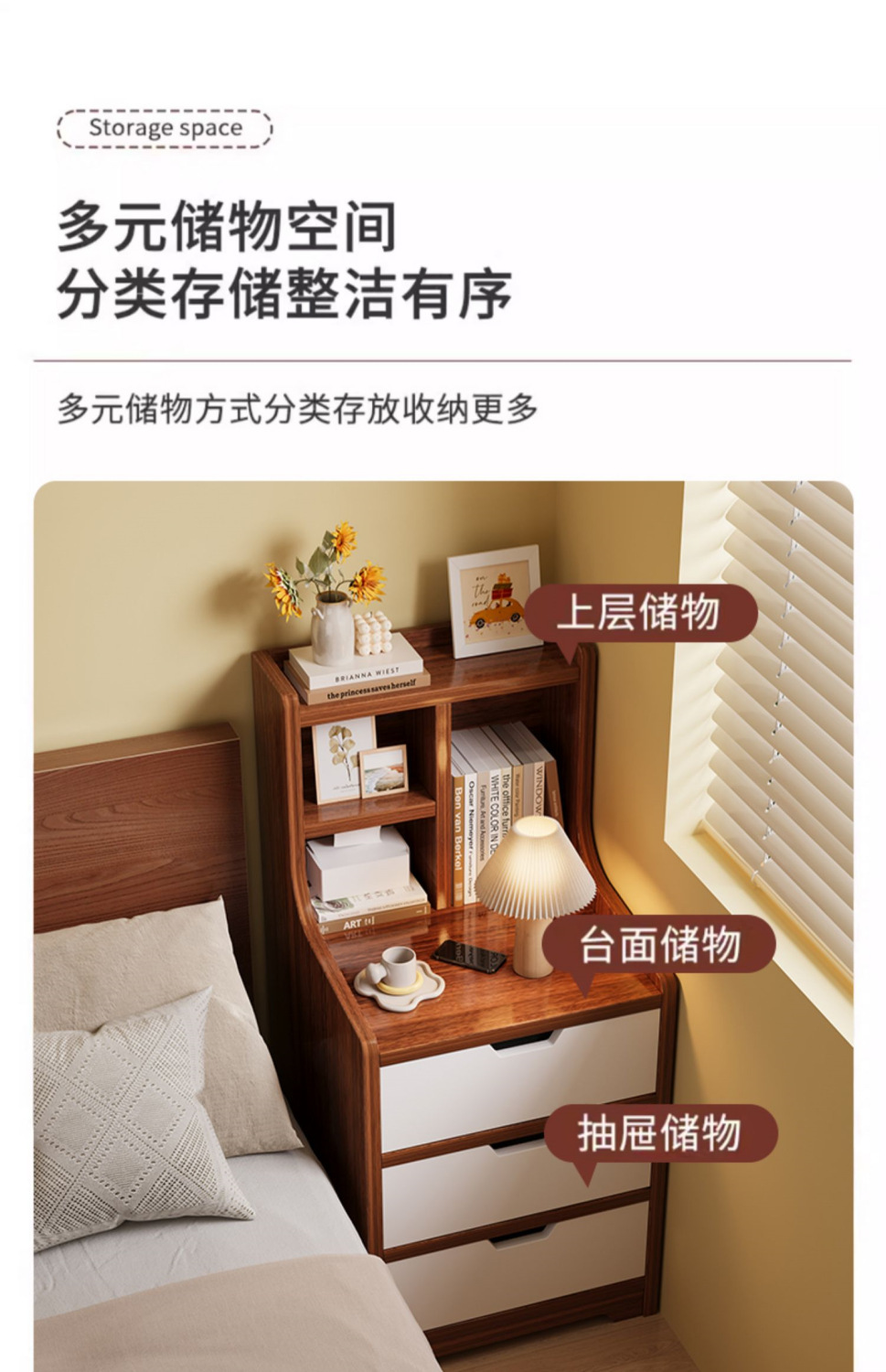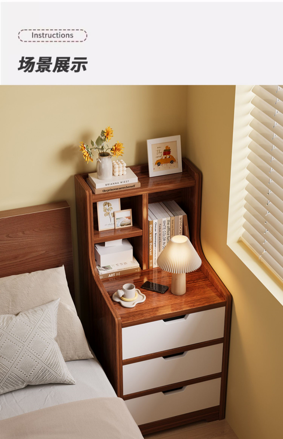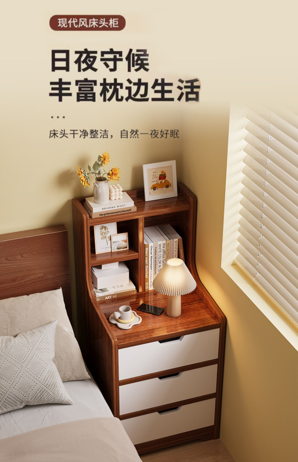 Прикроватная тумбочка в современном минималистичном стиле, простая многоярусная полка для хранения, шкафчик для спальни, небольшой шкафчик с ящиками для малогабаритных квартир.
