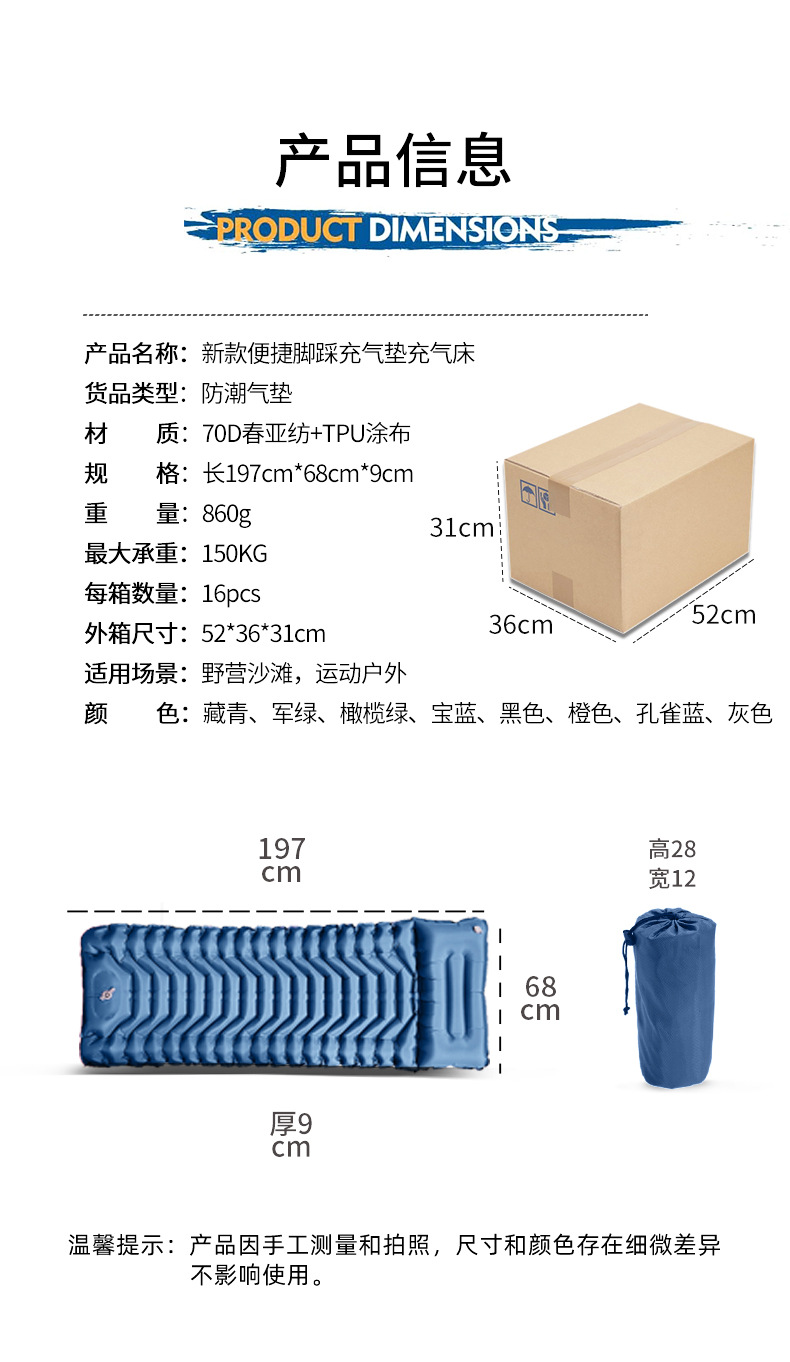 Трансграничная внешняя торговля автоматический надувной матрас открытый кемпинг надувной коврик кровать кемпинг влагостойкие палатка коврик надувной спальный коврик