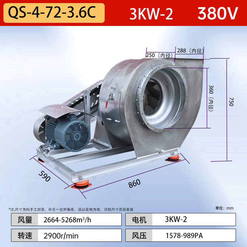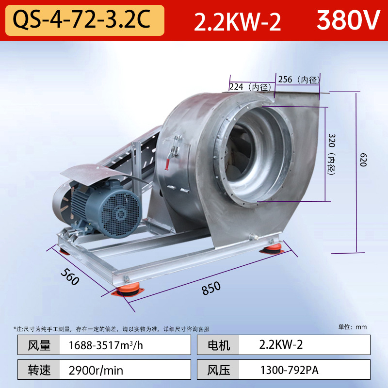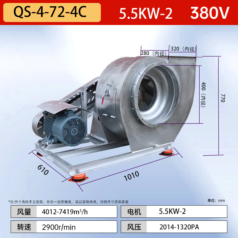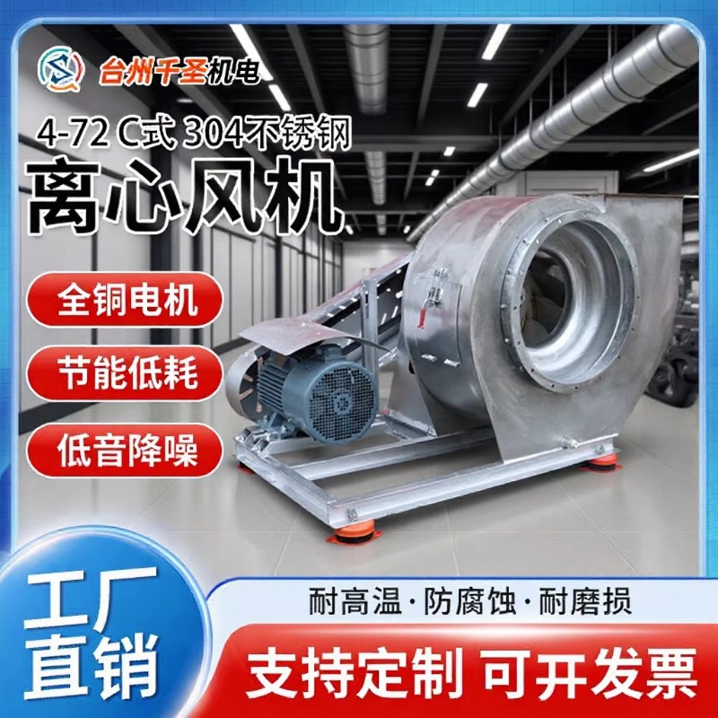 Вентилятор Qiansheng 304 из нержавеющей стали, тип 4-72C, антикоррозийный и устойчивый к высоким температурам, для использования в химической, пищевой и фармацевтической промышленности.