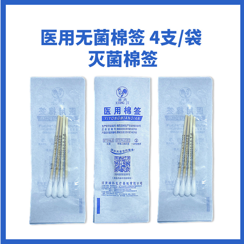 Петух Хэнань Ruke медицинский ватный тампон стерильный одноразовый ватный тампон 4 мешка 8 см ватных тампона оптовая продажа