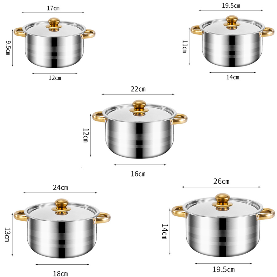 Прямые поставки с фабрики, трансграничная поставка, набор кастрюль из утолщенной нержавеющей стали, 18-26 см, стальная крышка, из Испании, Мексики, FCM