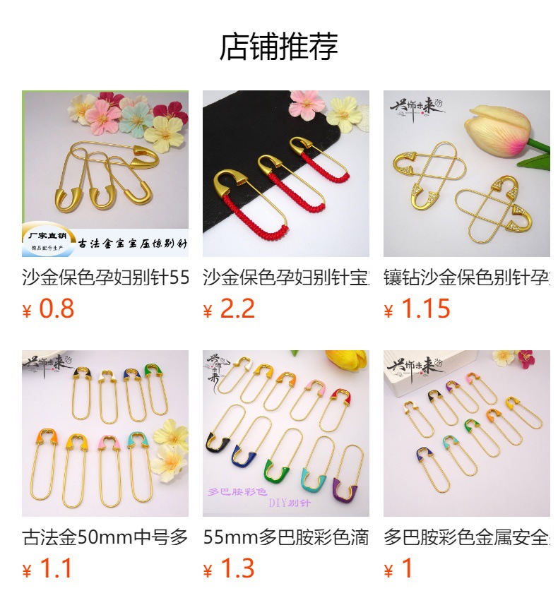 Песчаная золотая булавка для беременных 55/50/45mm Детская брошь Древний закон