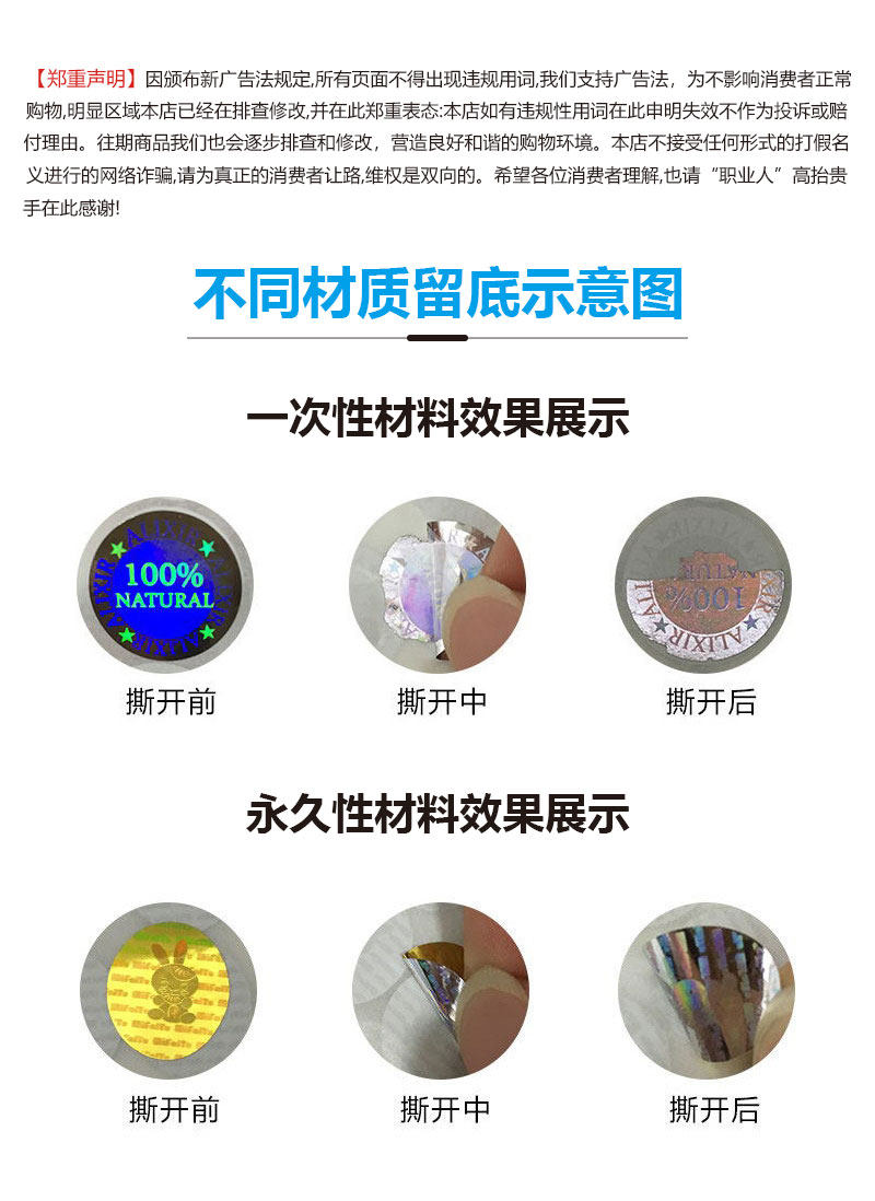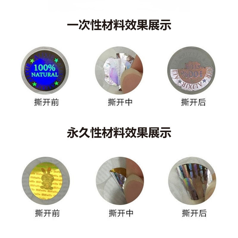 Лазерная этикетка против подделок, одноразовая отрывная недействительная лазерная этикетка против подделок, хрупкая наклейка для запечатывания табака и алкоголя.