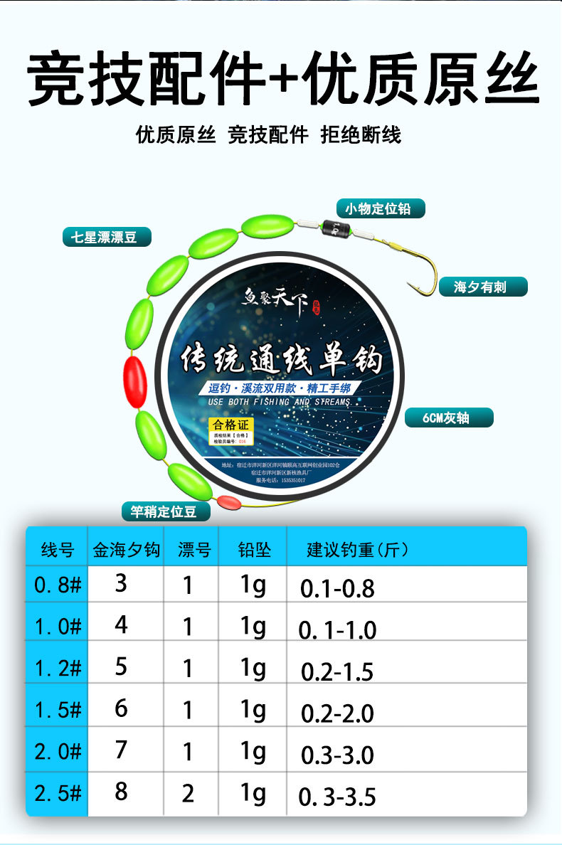 Прямые оптовые поставки от производителя: набор для рыбалки с плавающей леской семи звезд, предварительно завязанным одинарным крючком, полной основной леской и оригинальным поплавком.