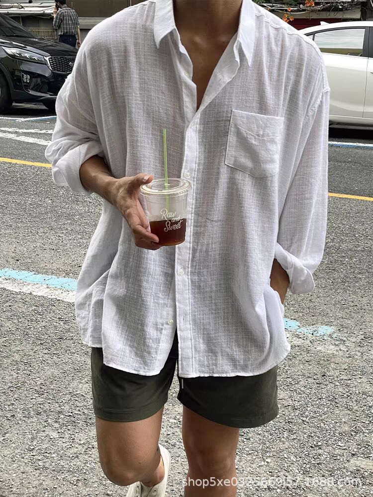 Европейские товары высокого класса хлопчатобумажные и льняные рубашки для мужчин дышащая кожа рыхлые длинные рукава тонкие солнцезащитные рубашки