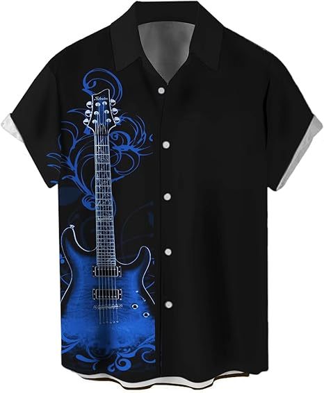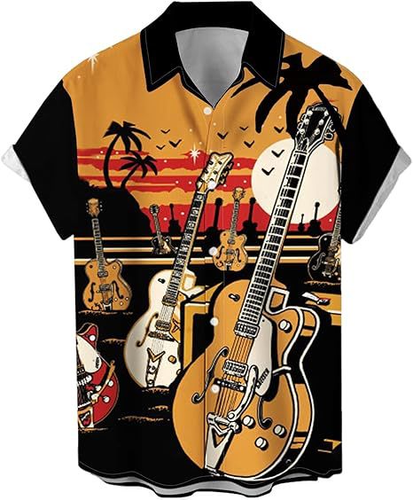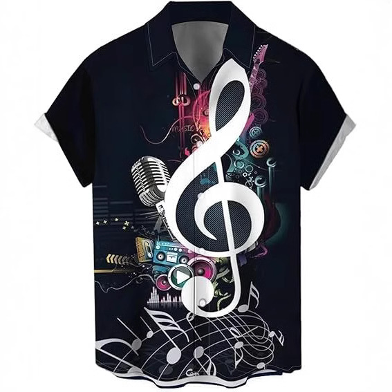 Мужская рубашка с модным музыкальным принтом, европейская и американская внешняя торговля Amazon, свободная летняя мужская рок-рубашка с короткими рукавами