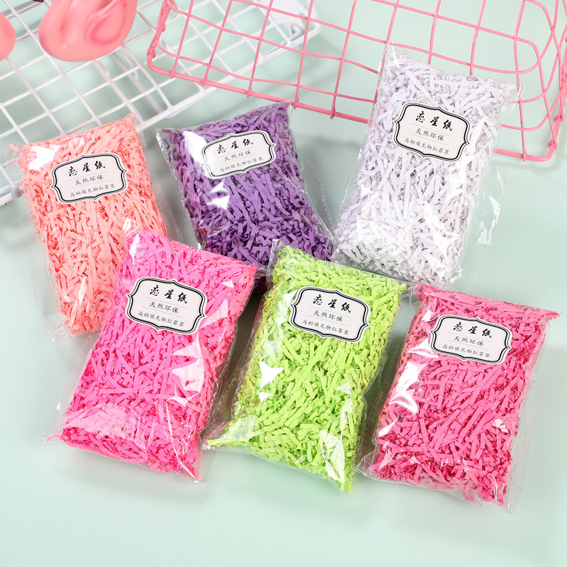 Плиссированная рафия 10г 50г 100г, наполнитель из измельченной бумаги для косметических подарочных коробок, декоративная упаковка, шелковая рафия