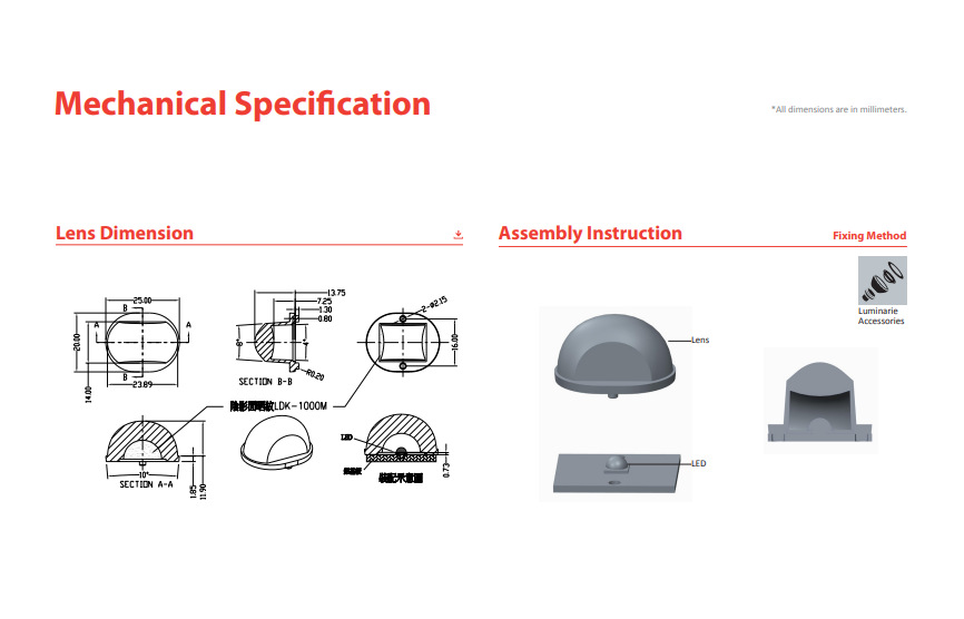 Светодиодная линза LedLink и линза в сборе LL01CR-DEZ10115L06