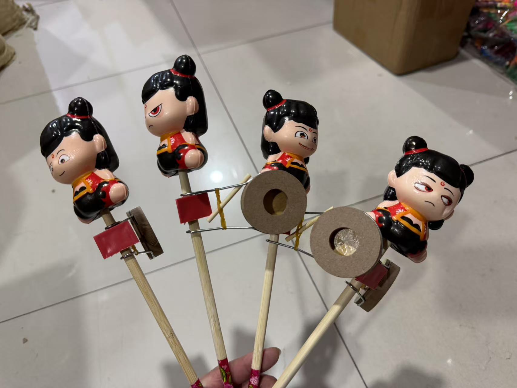 摇摇是木制,皮筋 ,铁丝等手工制作,每一批鼓红色 原色随机介意请咨询客服