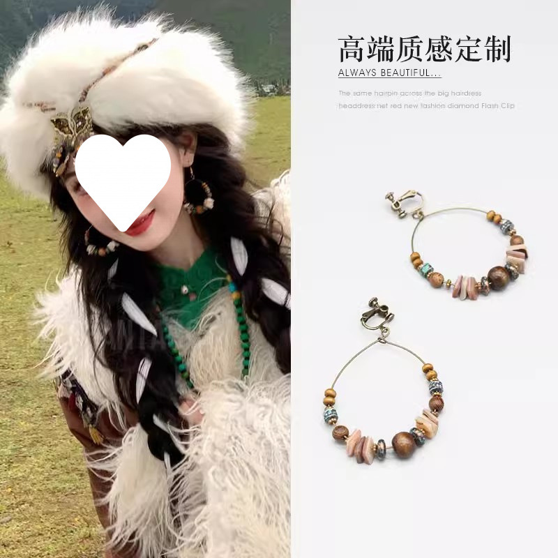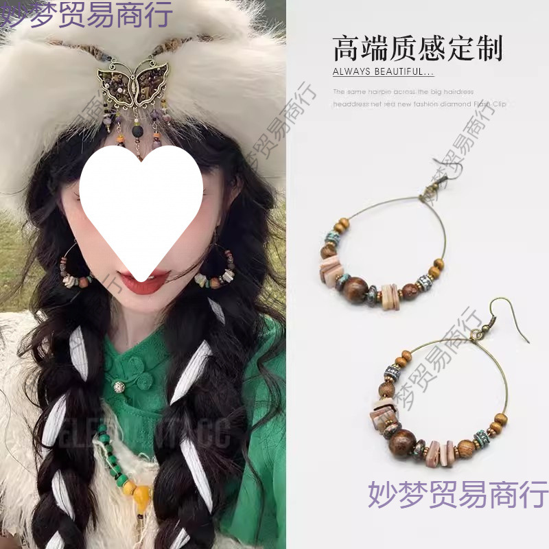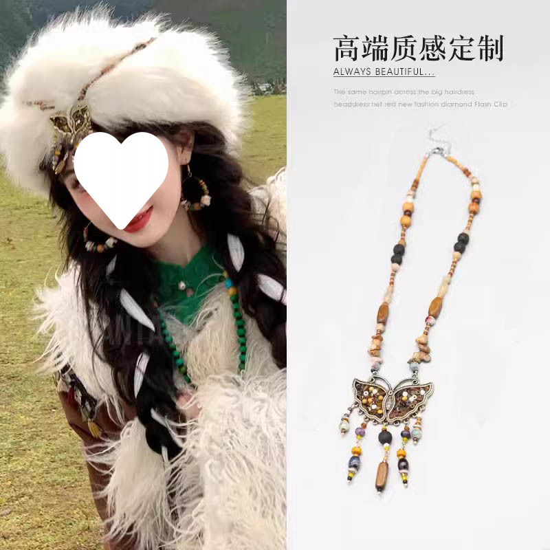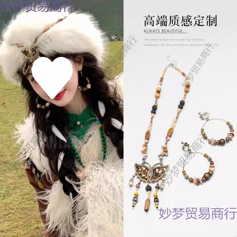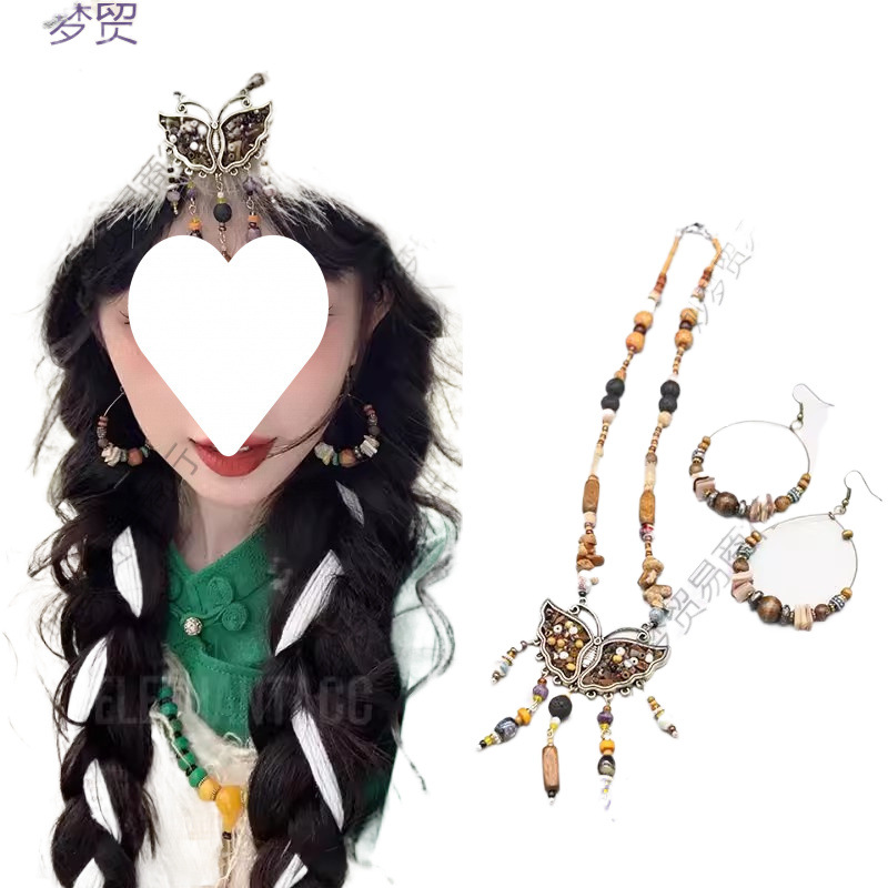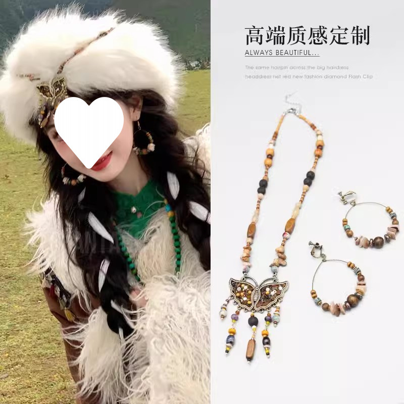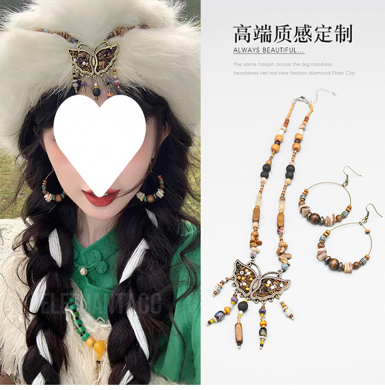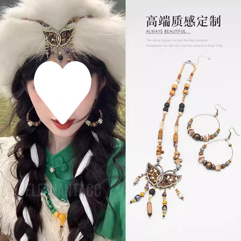 Новые тибетские аксессуары для волос из бисера для женщин, серьги для фотографий племенной принцессы в этническом стиле, цепочка на лоб, головной убор в виде бабочки в стиле ретро, зажимы для ушей
