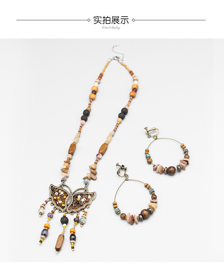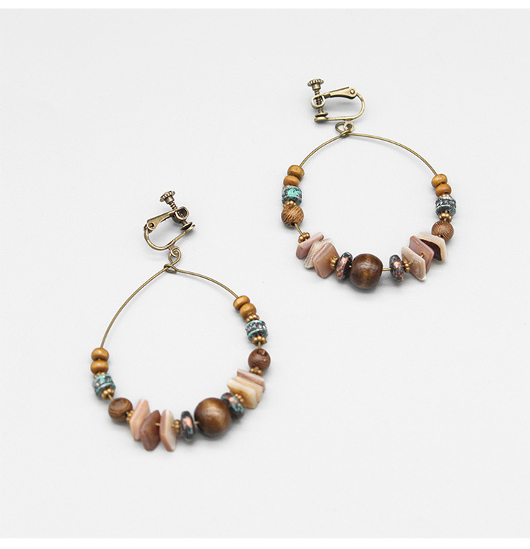 Коричневая цепочка-бабочка + большие серьги-кольца из бисера; Коричневая цепочка-бабочка + большой обруч с бусинами; коричневая цепочка-бабочка; [Требуется пирсинг] Серьги-кольца из коричневых бусин; [Пирсинг не требуется] Большие серьги-кольца из коричневых бусин