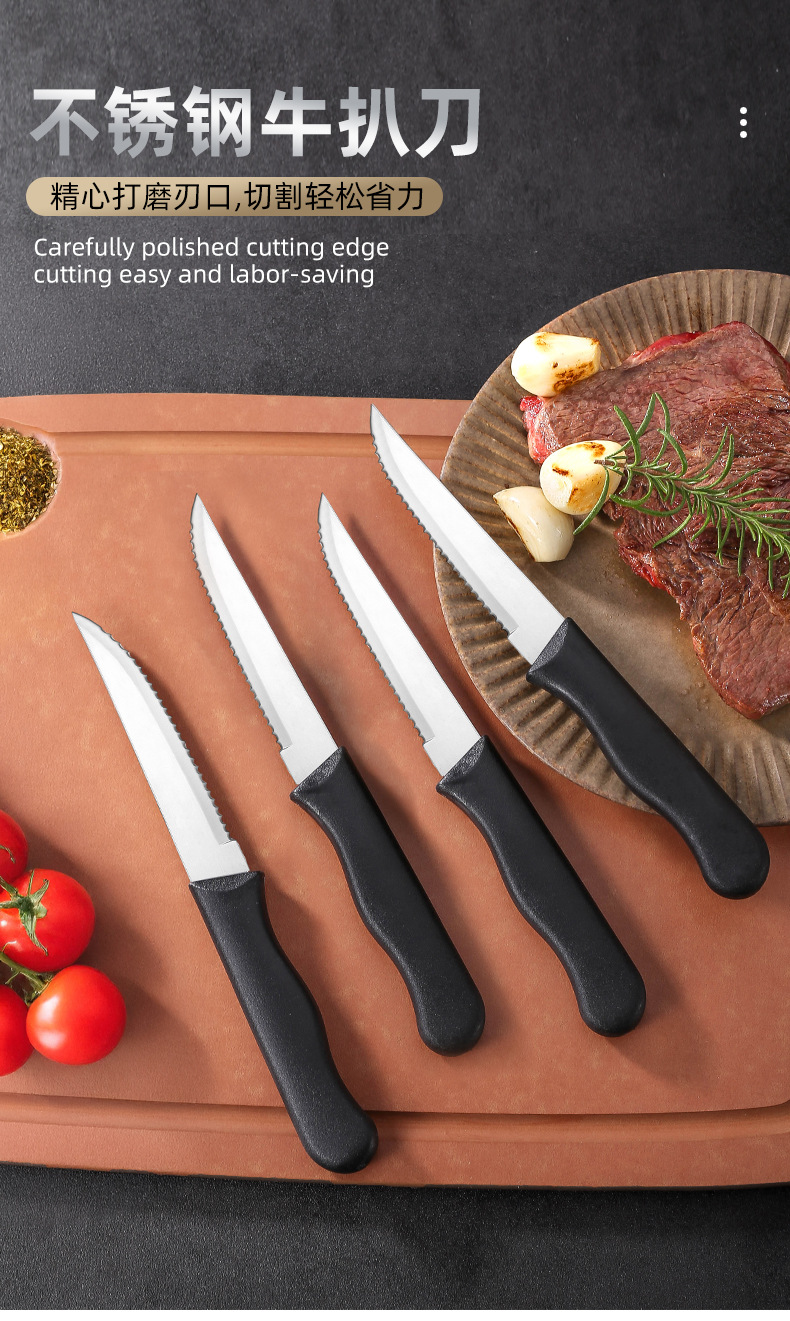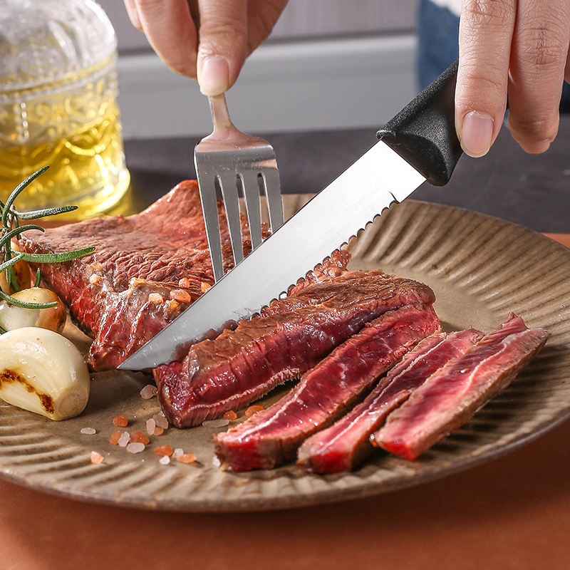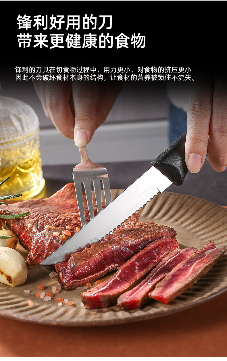Черный нож для стейка из нержавеющей стали, нож в западном стиле, столовый нож для стейка, зубчатый нож, кухонные принадлежности для отелей и дома