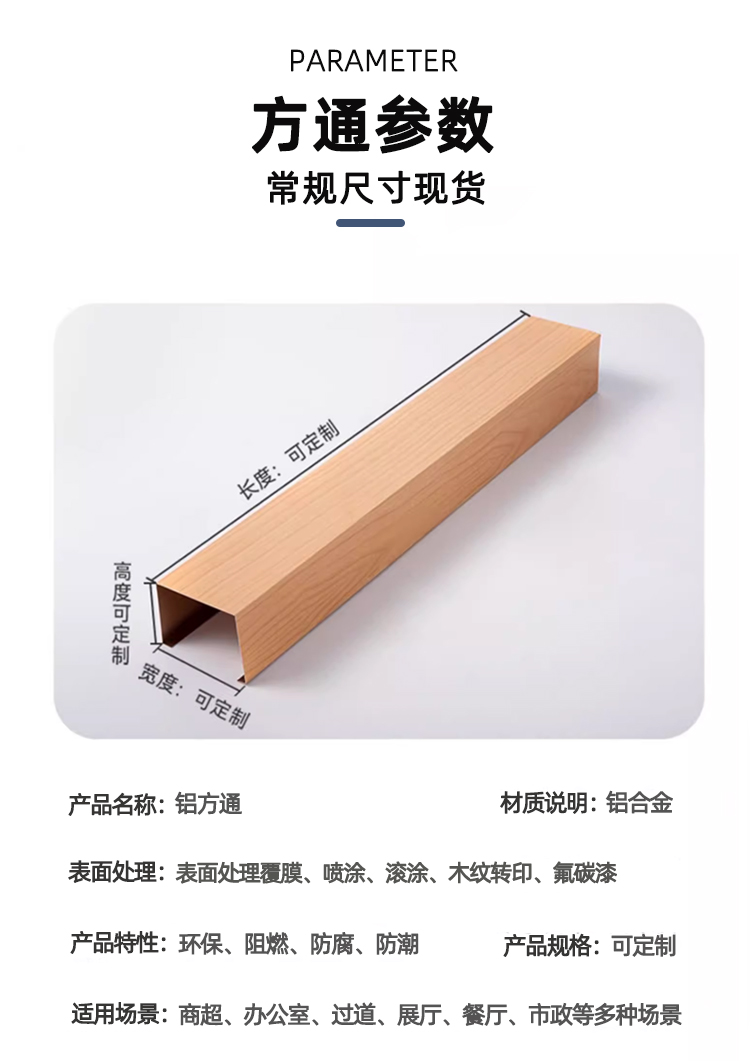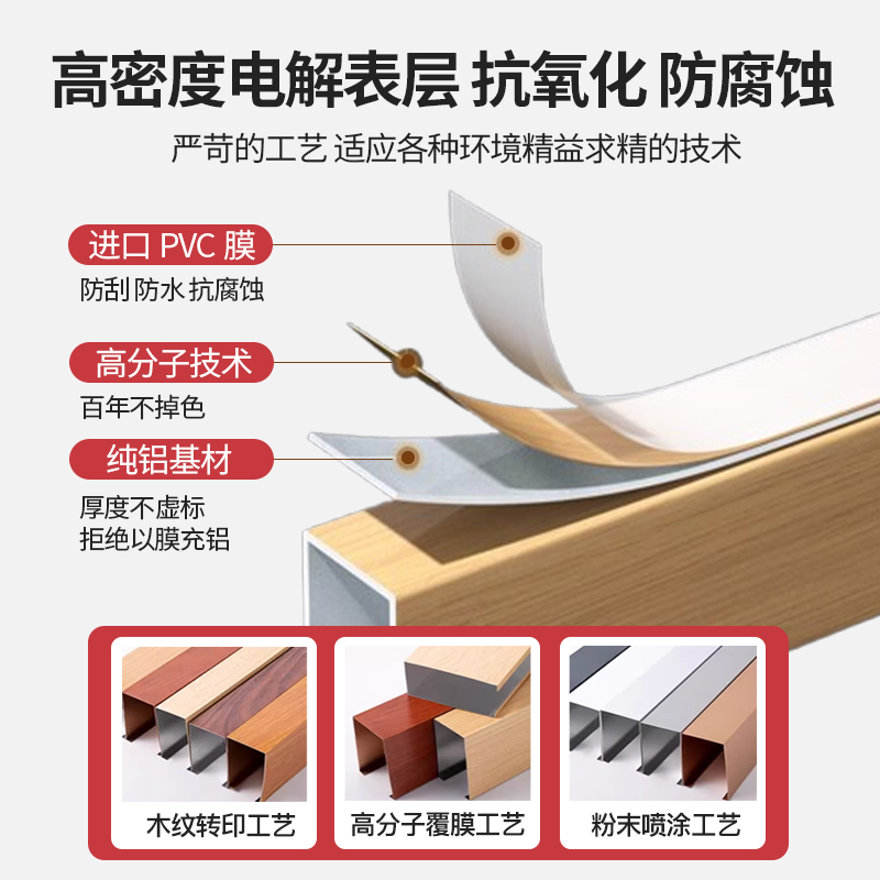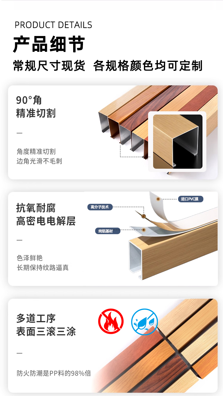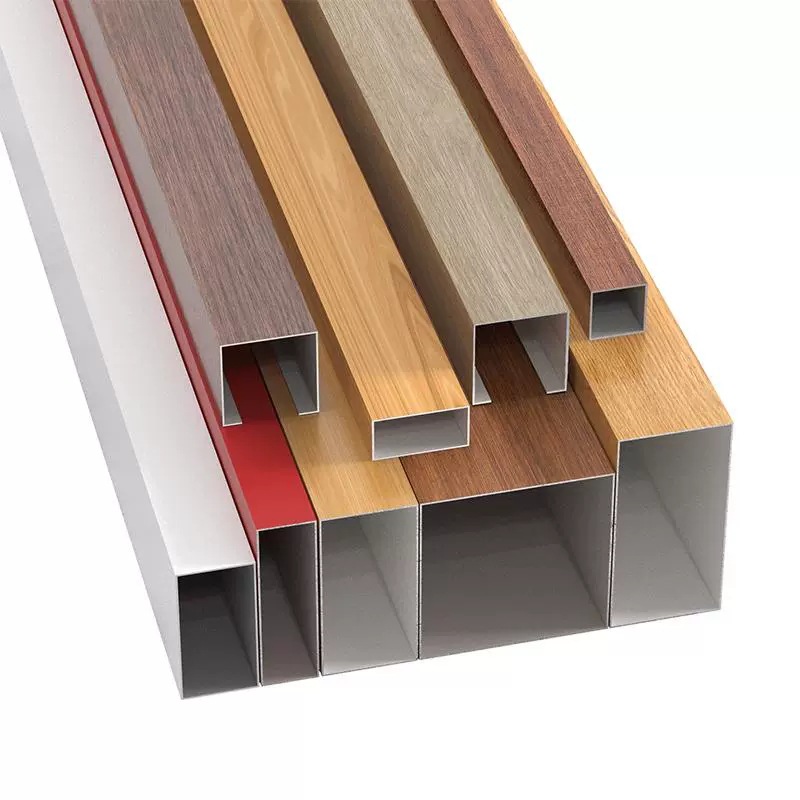 U-образный алюминиевый профиль для потолочной решетки, самоклеящаяся перегородка для офиса, имитация дерева, алюминиевый сплав, квадратная труба