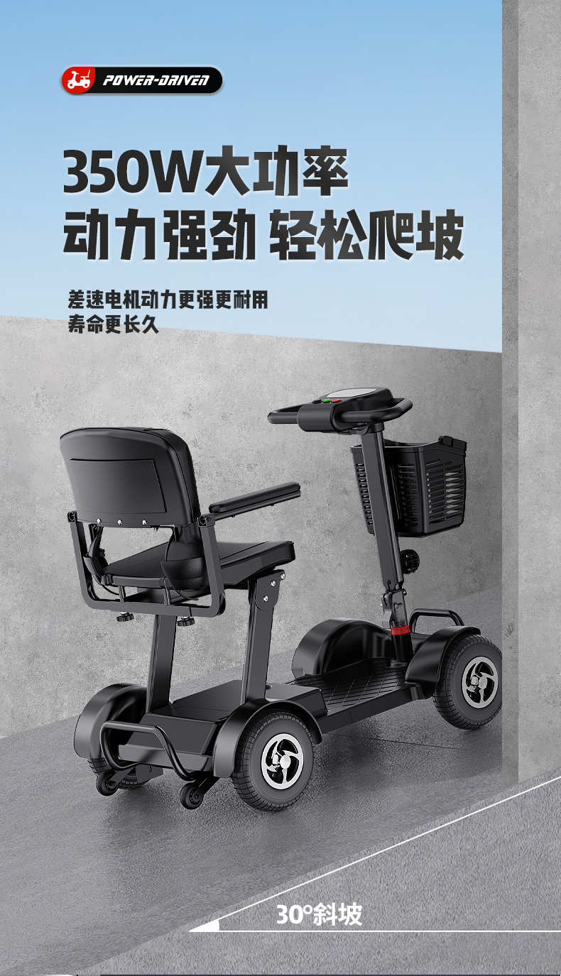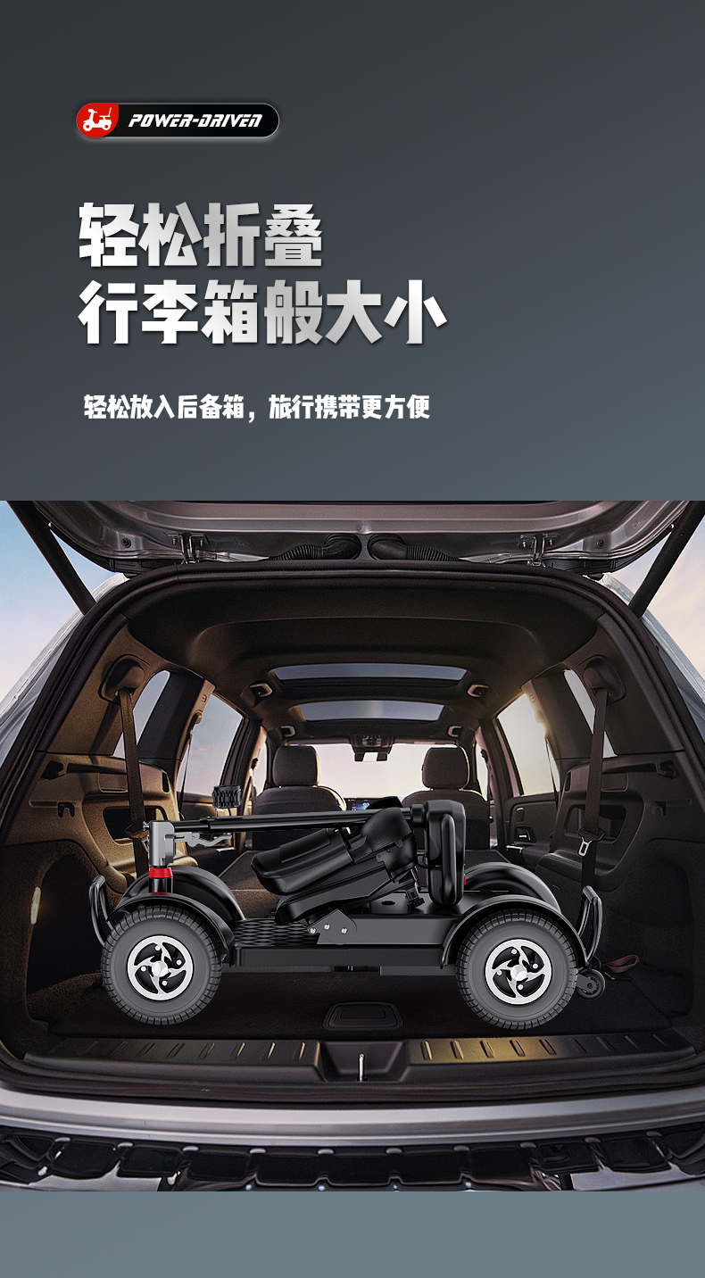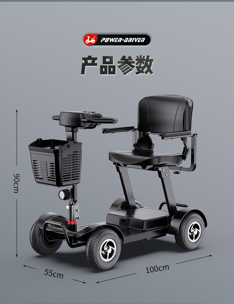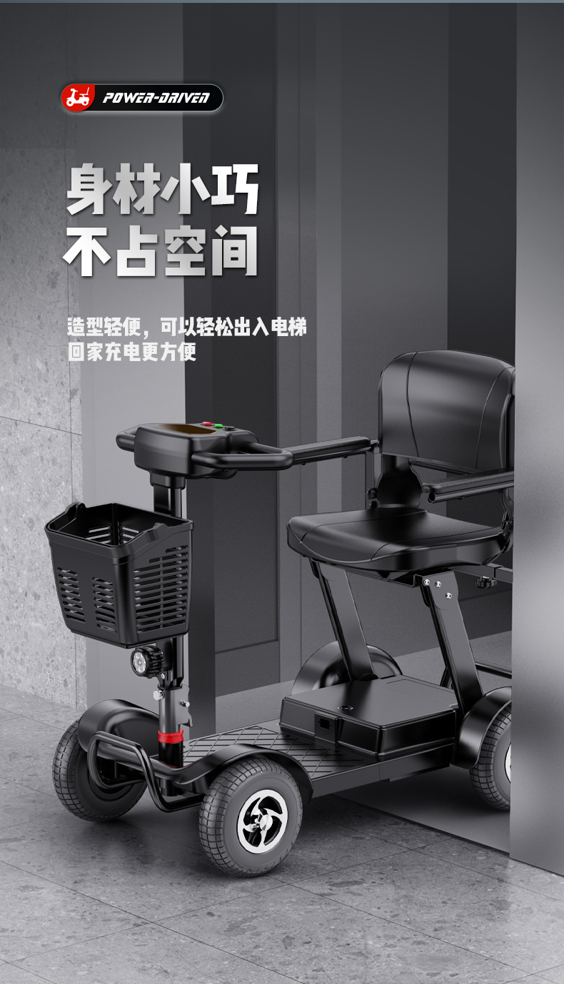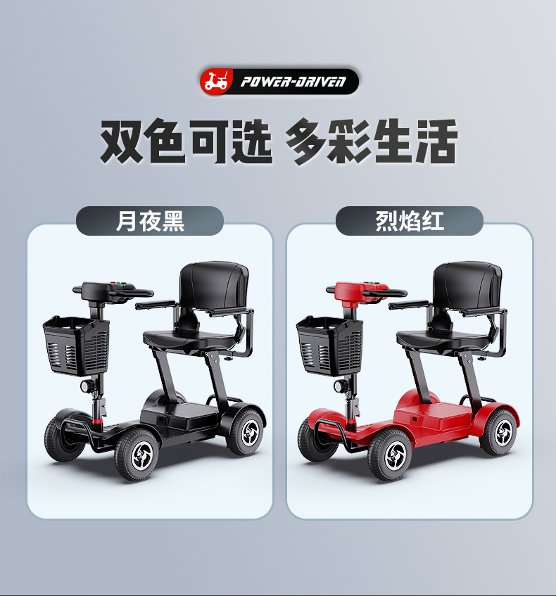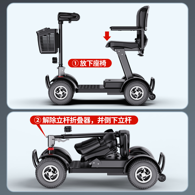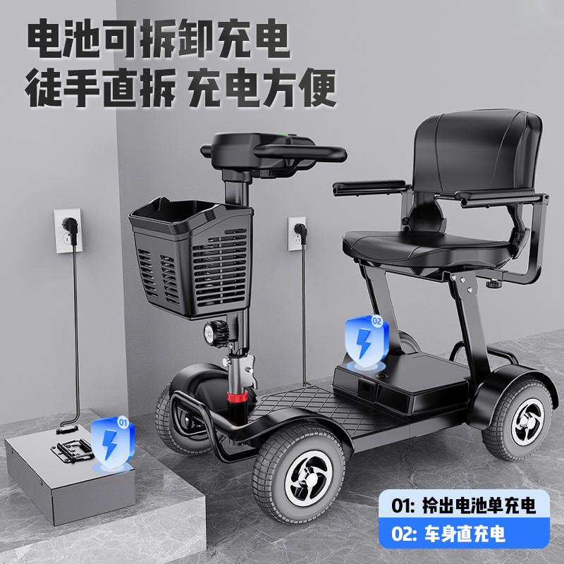 Электрический складной четырехколесный скутер для пожилых людей Belevi, двойной, портативный, с возможностью подзарядки