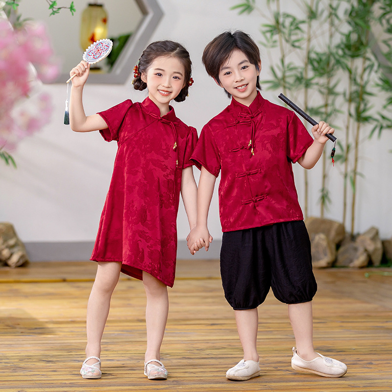 Внешняя торговля детской одеждой для мальчиков и девочек Hanfu Summer новый китайский стиль новый 2025 новый детский костюм для исполнения оптом