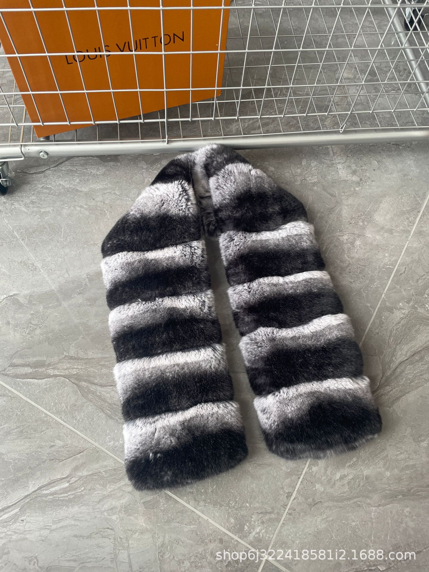 Двусторонний меховой шарф из меха кролика рекса, шиншиллы, сине-фиолетовый полосатый меховой шарф