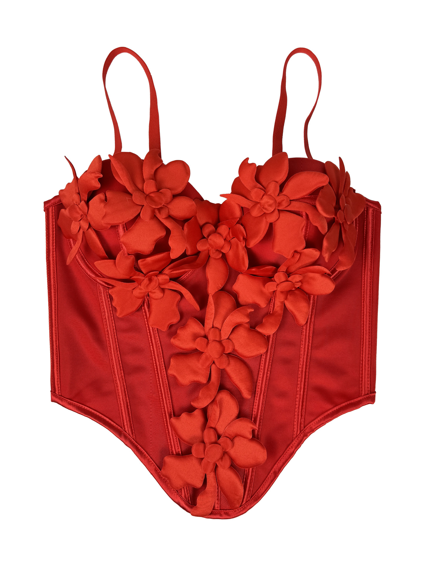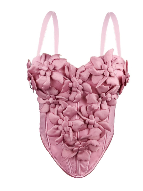 Новый трехмерный цветочный топ-бретелька в европейском и американском стиле, облегающий крой, сексуальный бюстгальтер в стиле «рыбья кость», внутренняя одежда