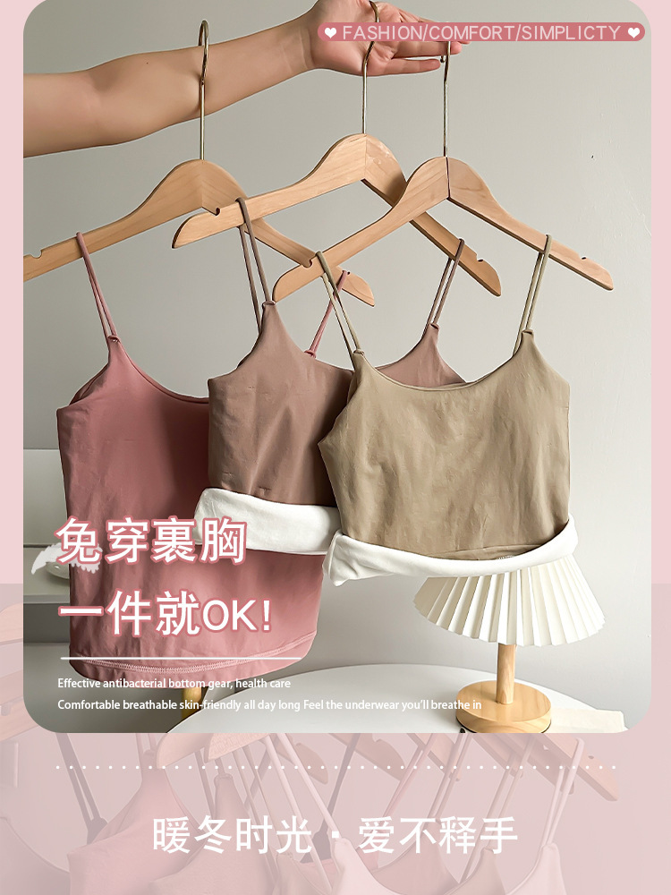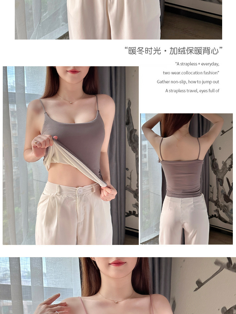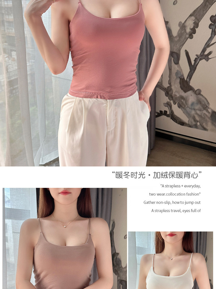 Осенне-зимняя теплая майка для женщин, утолщенная базовая рубашка на флисовой подкладке с нагрудными подушечками, подходит для ношения на улице или в качестве внутреннего слоя для предотвращения воздействия окружающей среды.