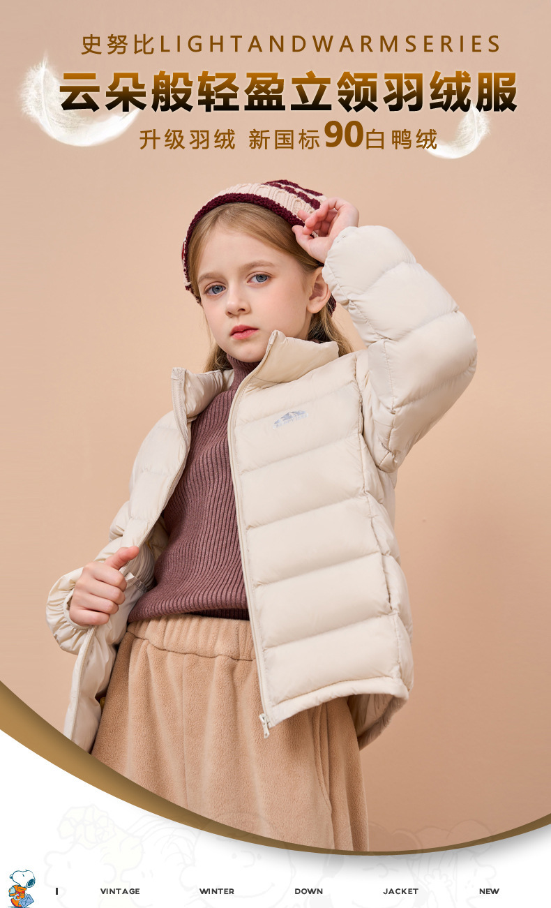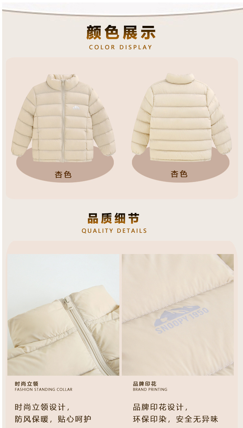 Snoopy новый осенний и зимний детский стоячий воротник легкий пуховик внутренний вкладыш теплый мальчик пальто для девочек