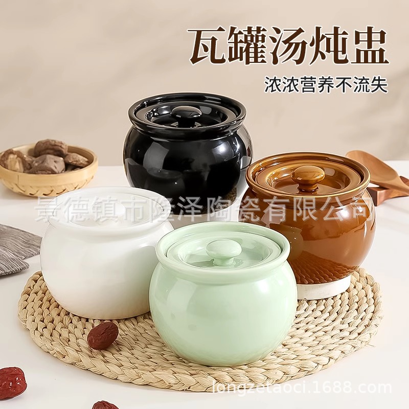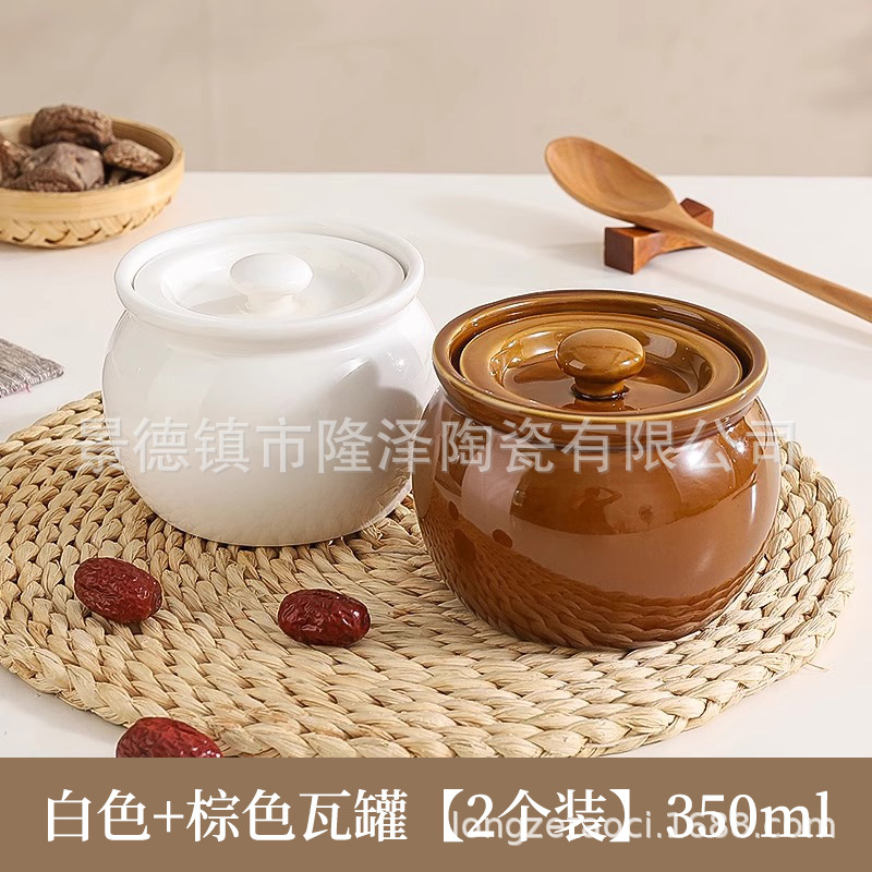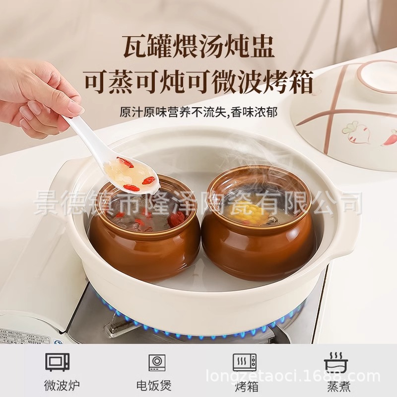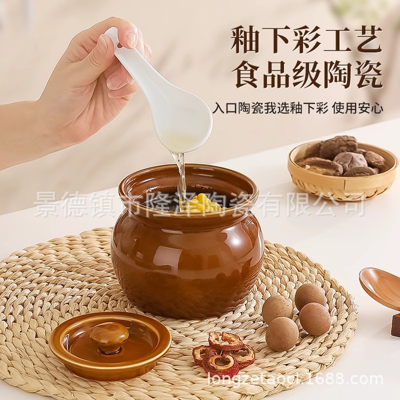 Керамическая кастрюля для домашнего использования, чашка для тушения с отделением воды на одного человека, пищевая керамическая кастрюля для приготовления на пару с крышкой для приготовления овощей на пару.