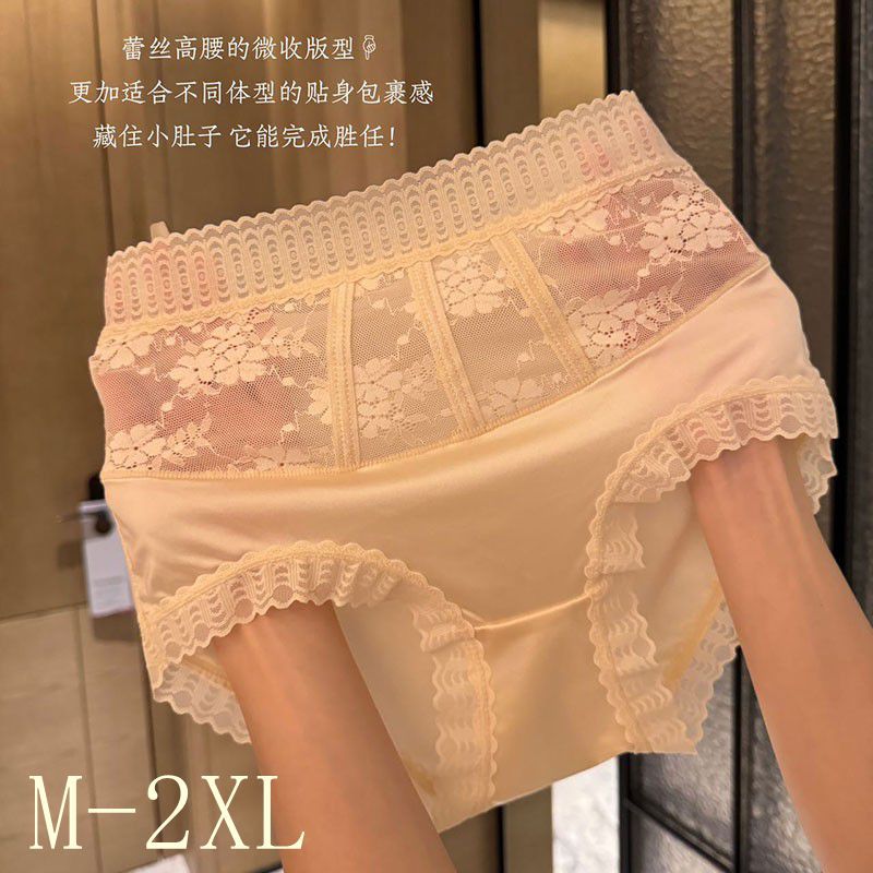Атласное кружевное нижнее белье с высокой талией для женщин, подтягивающее живот и подтягивающее ягодицы, высококачественные бесшовные сексуальные трусы большого размера телесного цвета.