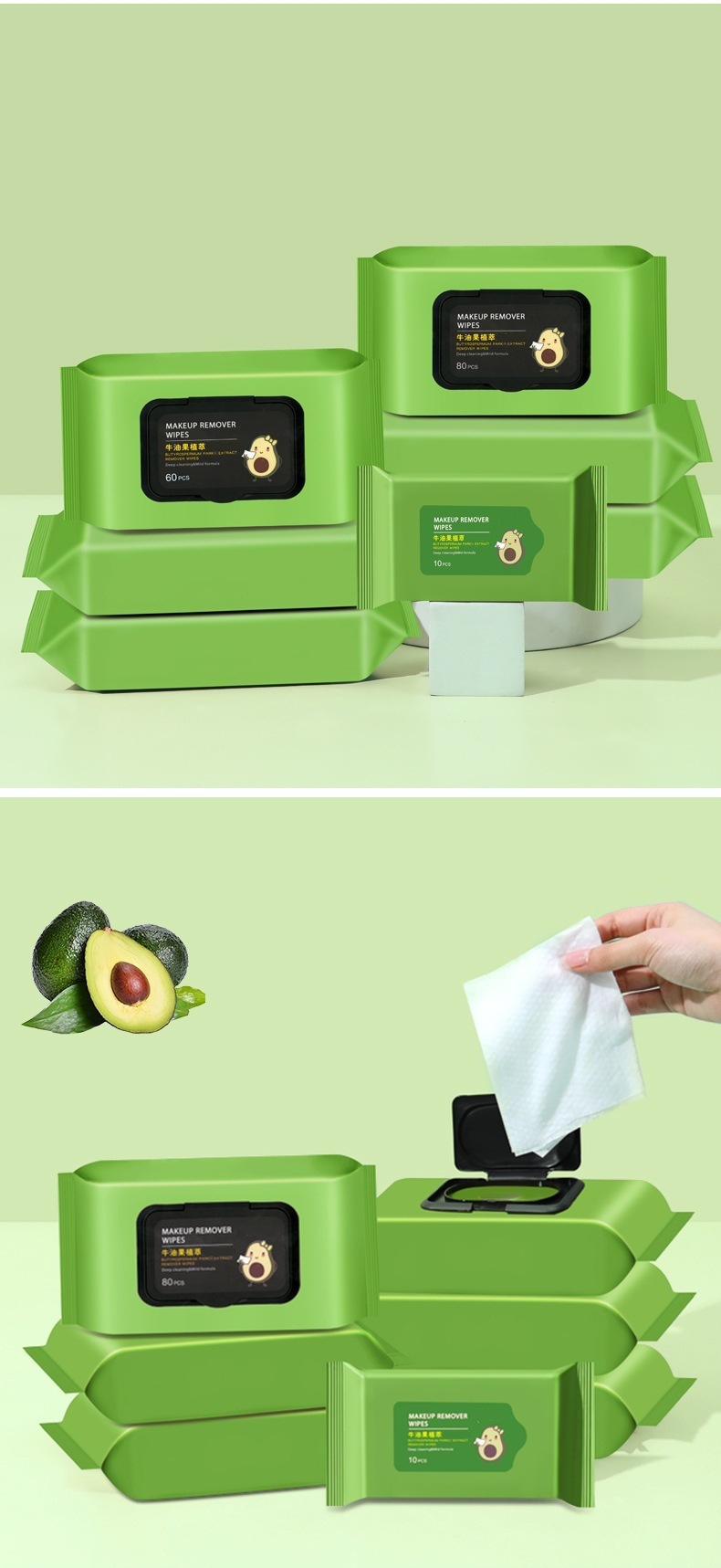 Упаковка из 12 очищающих салфеток с авокадо; 60 упаковок чистящих салфеток с авокадо.; Упаковка 80 очищающих салфеток с авокадо; 1 упаковка чистящих салфеток с авокадо.; 32 шт. чистящих салфеток с авокадо (в упаковке); 50 шт. чистящих салфеток с авокадо (в упаковке)
