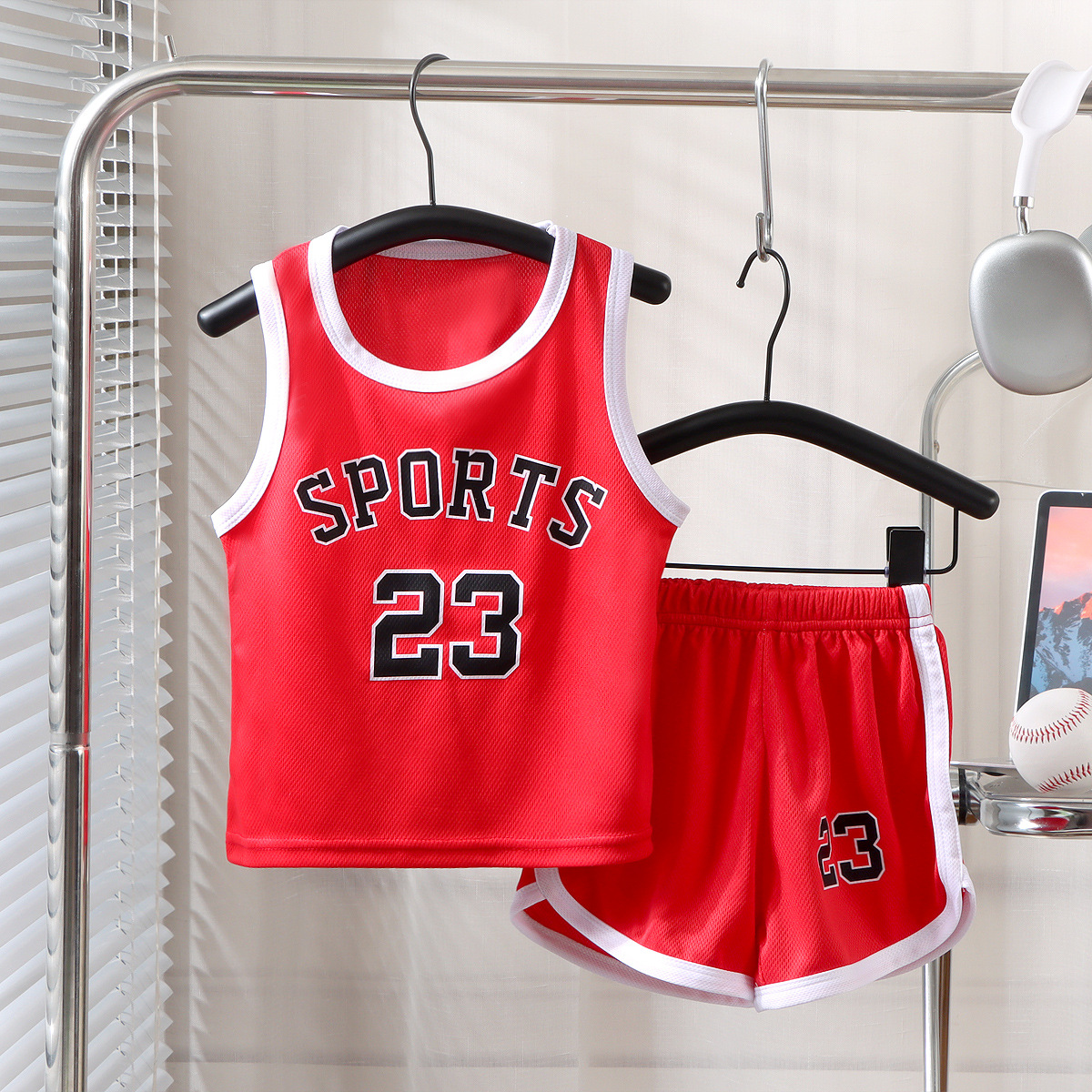 Детская одежда Летнее детское быстродушение Спортивный костюм для мальчиков без рукавов Детская баскетбольная одежда Летние шорты