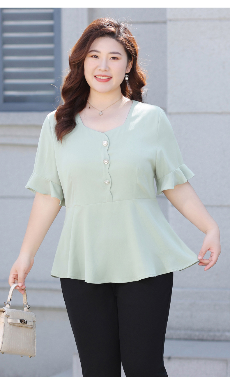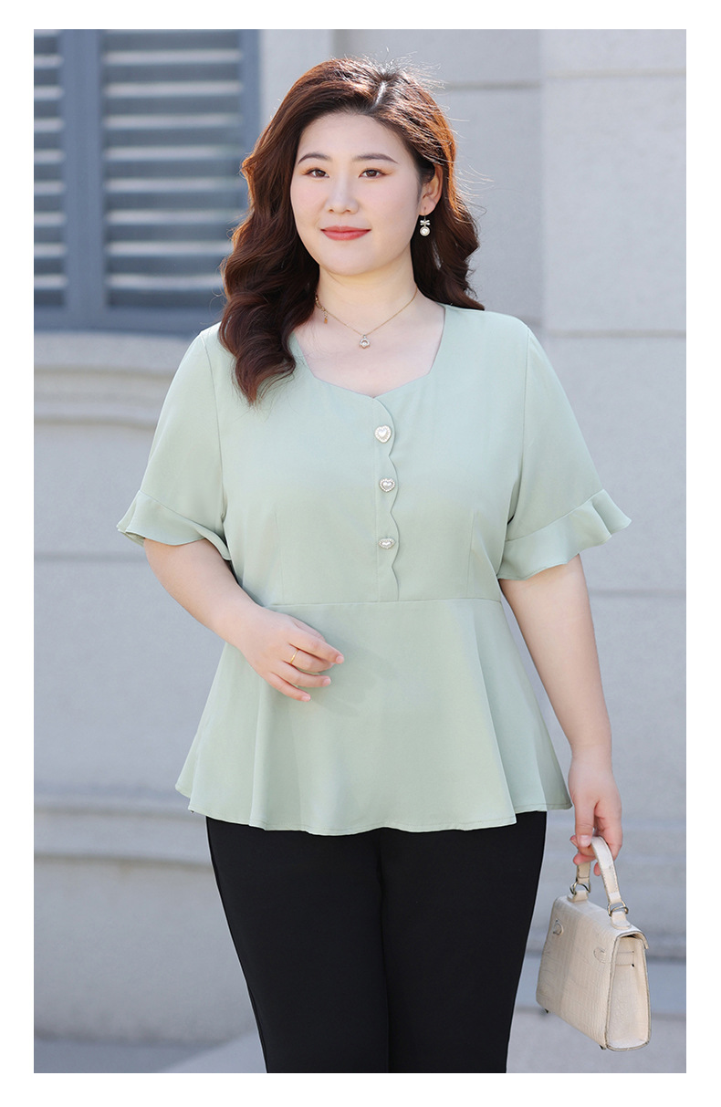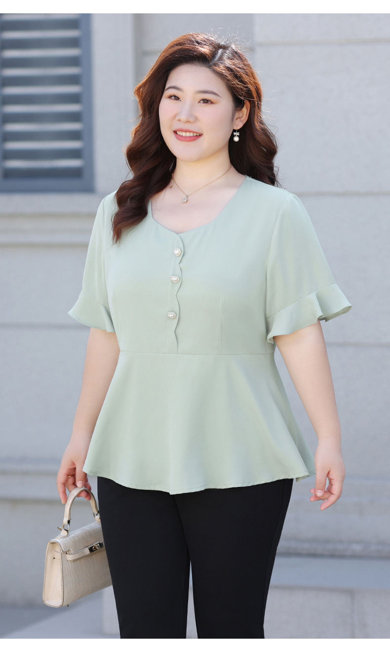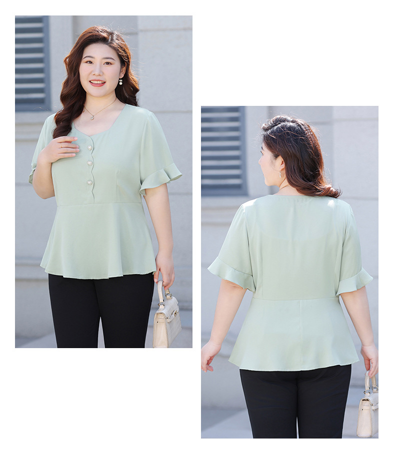 Новая женская шифоновая блузка на лето 2026 года, модный драпированный топ с коротким рукавом и рукавом три четверти для женщин больших размеров.