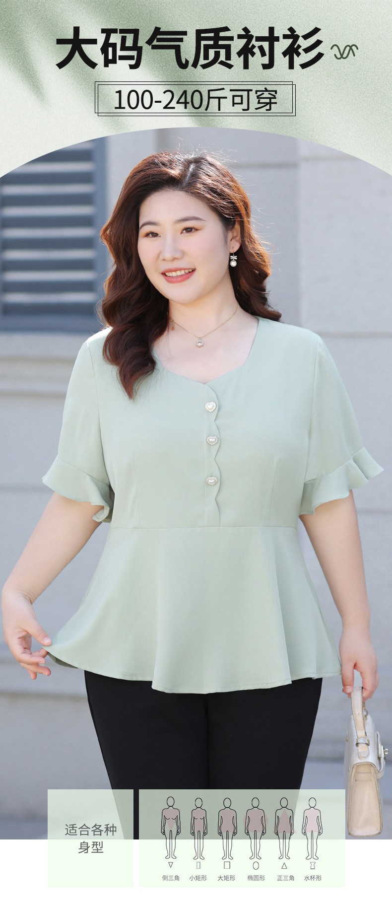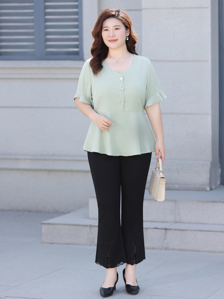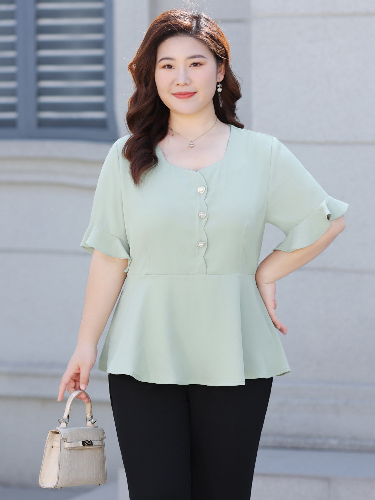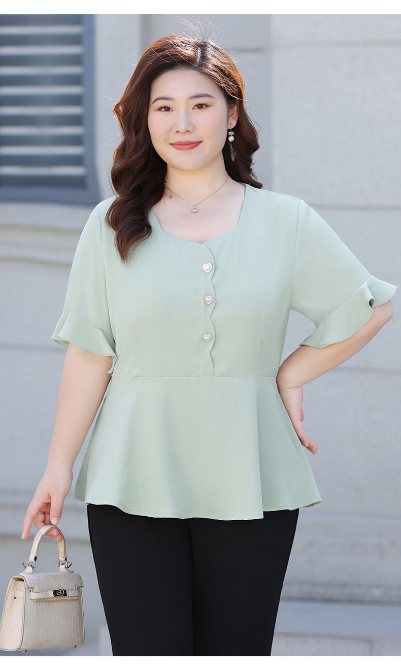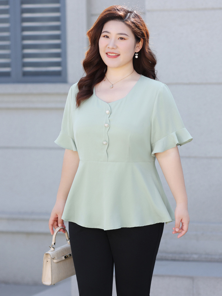 Новая женская шифоновая блузка на лето 2026 года, модный драпированный топ с коротким рукавом и рукавом три четверти для женщин больших размеров.