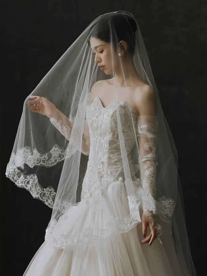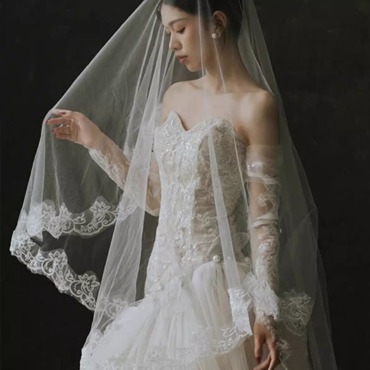 Оптовая продажа новый свадебный однослойный кружевной вуаль корейские свадебные аксессуары свадебное платье аксессуары